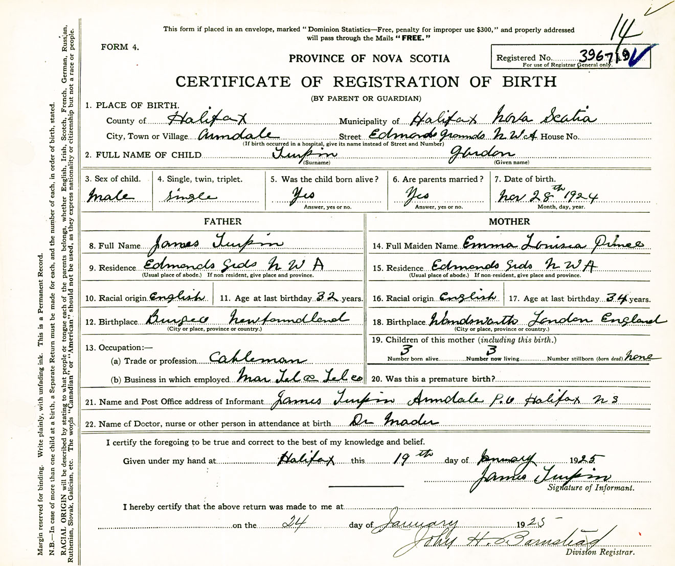 Male Birth Registration: Year: 1924 number: 39600719