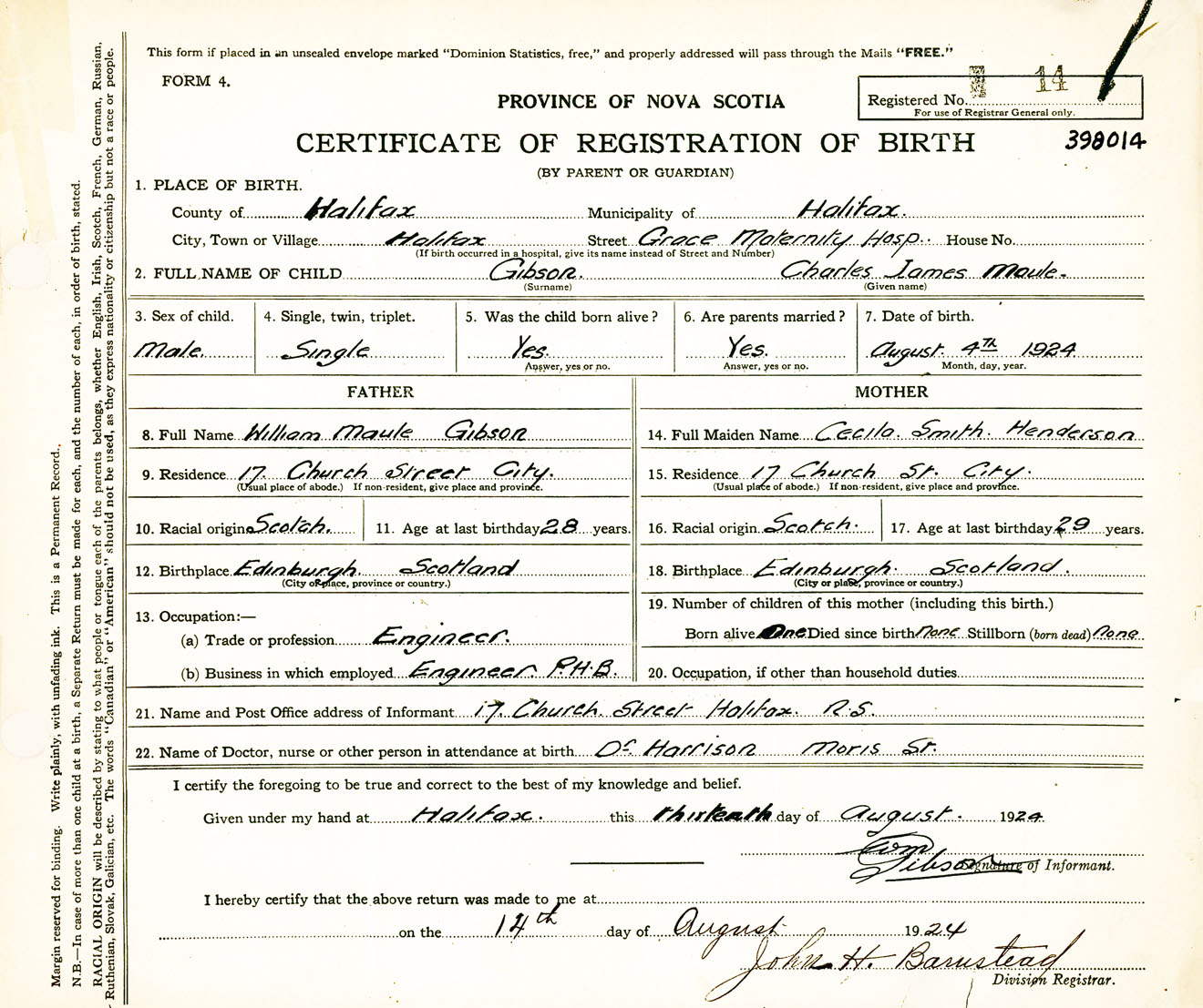 Male Birth Registration: Year: 1924 number: 39800014