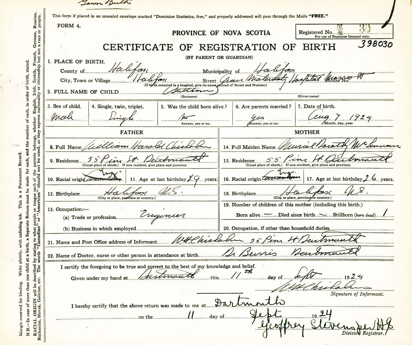 Male Birth Registration: Year: 1924 number: 39800030