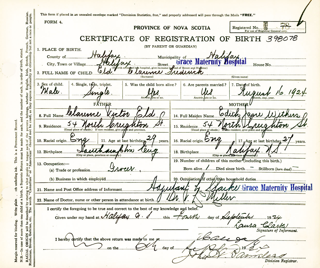 Male Birth Registration: Year: 1924 number: 39800078
