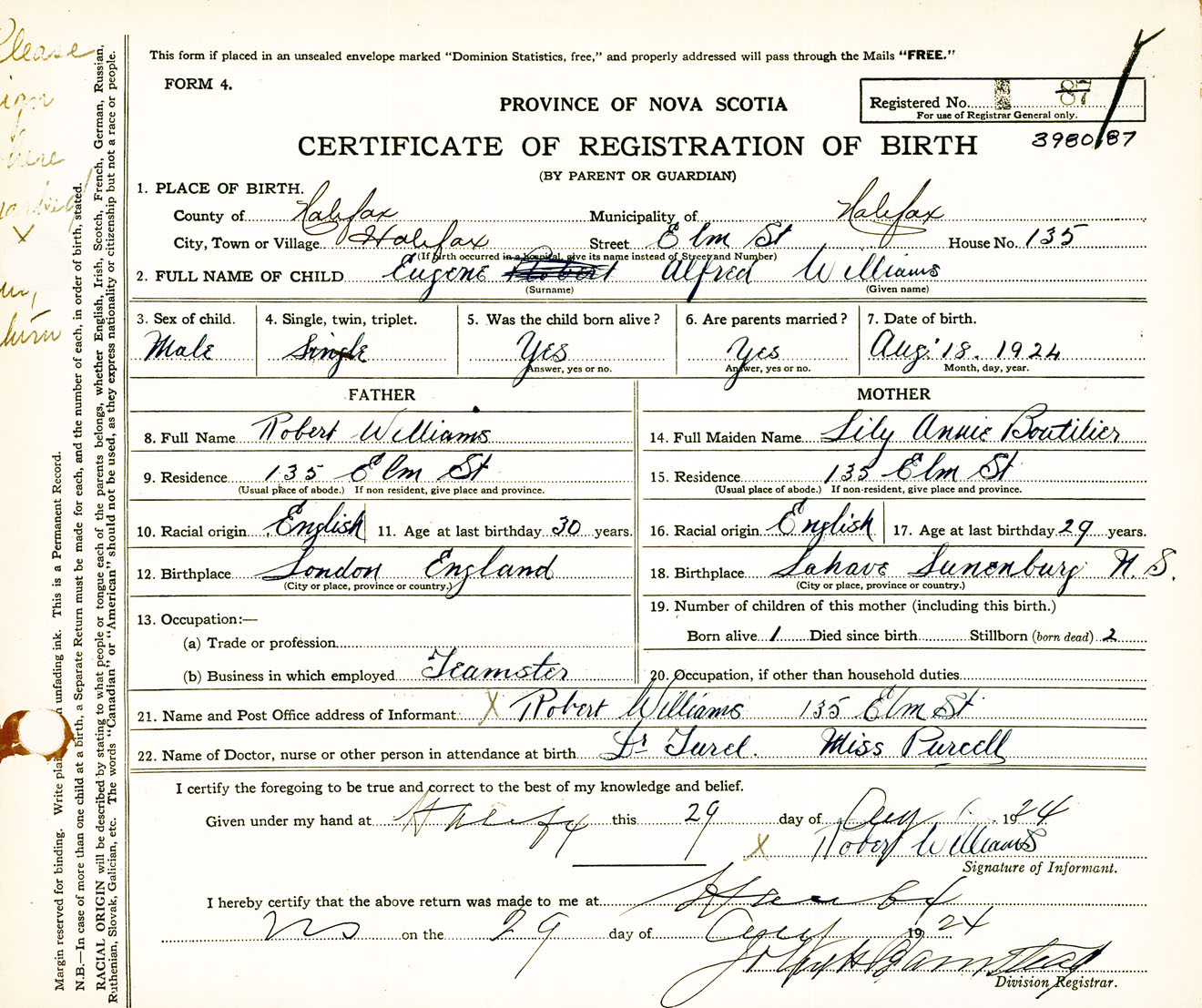 Male Birth Registration: Year: 1924 number: 39800087