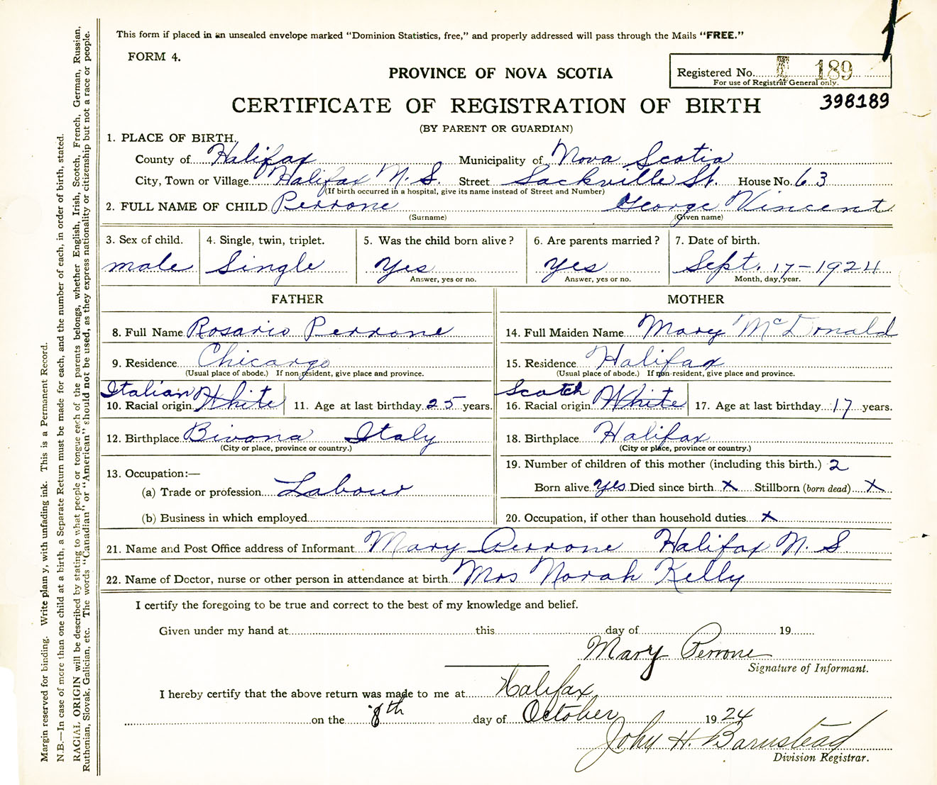Male Birth Registration: Year: 1924 number: 39800189