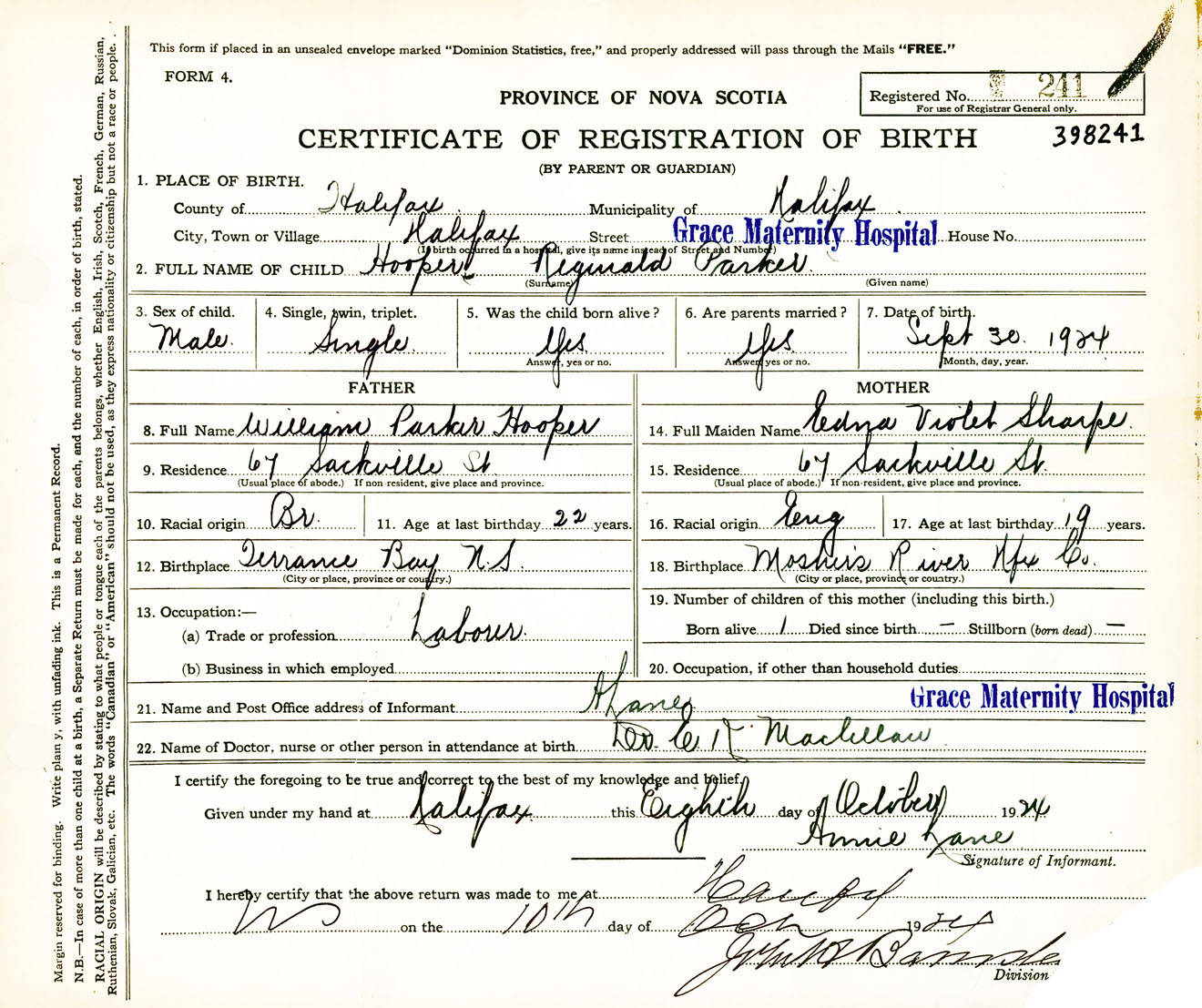 Nova Scotia Archives — https://archives.novascotia.ca/vital-statistics/birth/?ID=452899