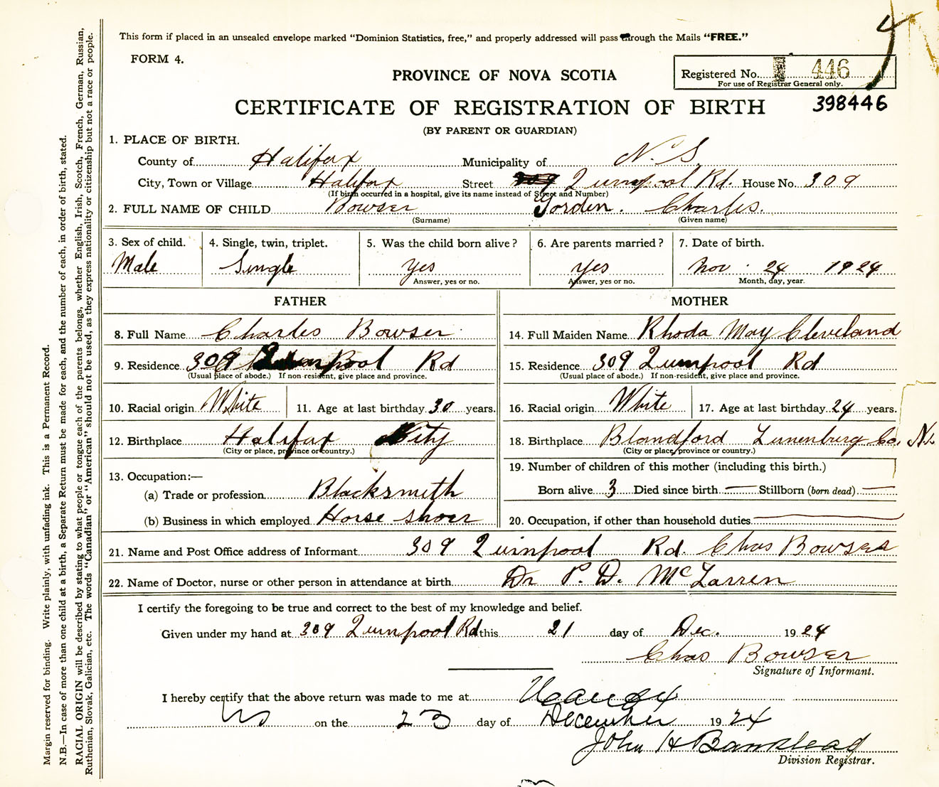 Male Birth Registration: Year: 1924 number: 39800446