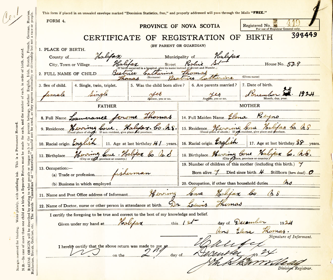 Female Birth Registration: Year: 1924 number: 39800449