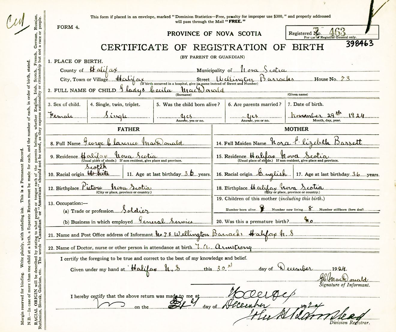 Female Birth Registration: Year: 1924 number: 39800463