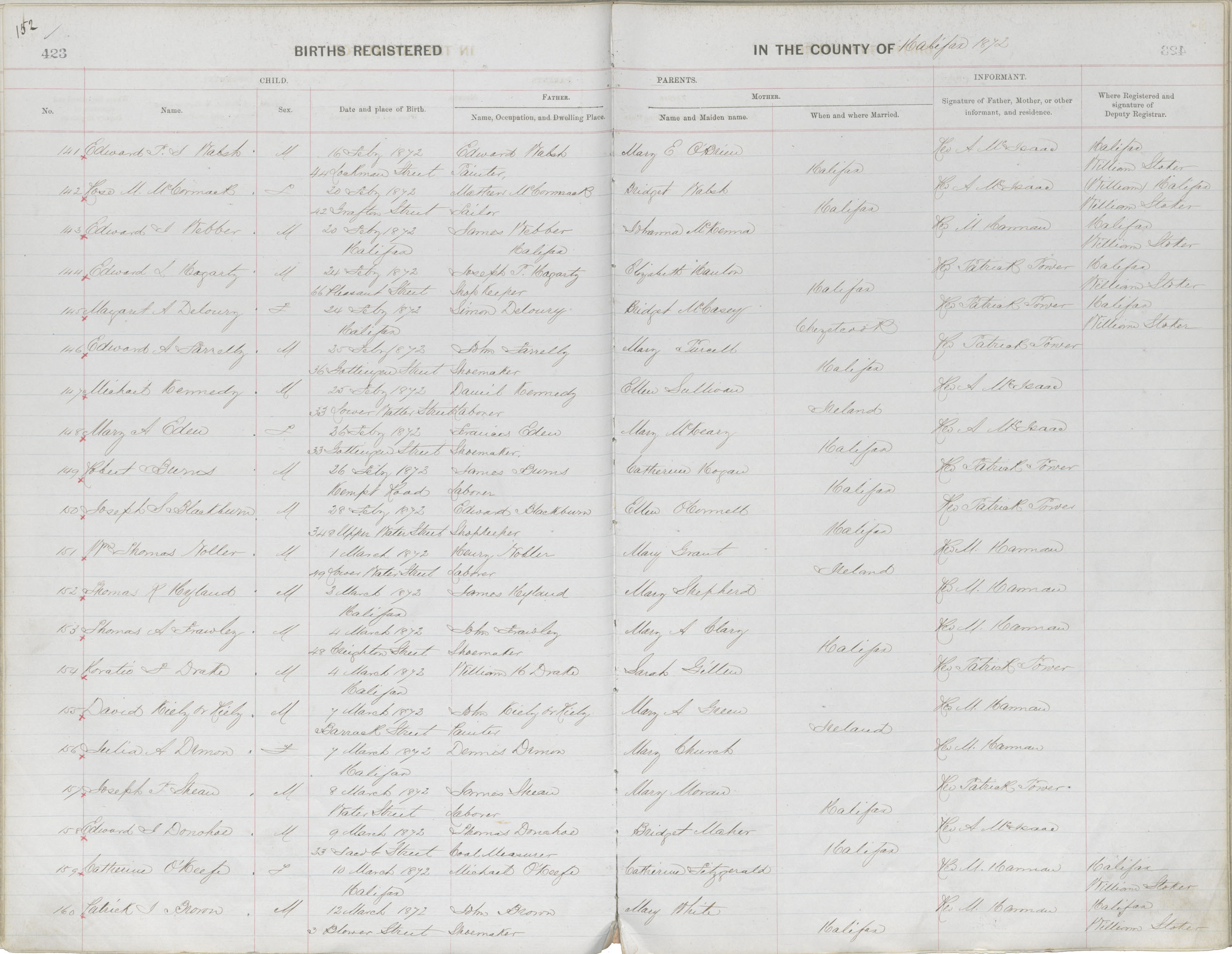 Birth Registration: Year: 1872 book: 1810 page: 152 number: 160