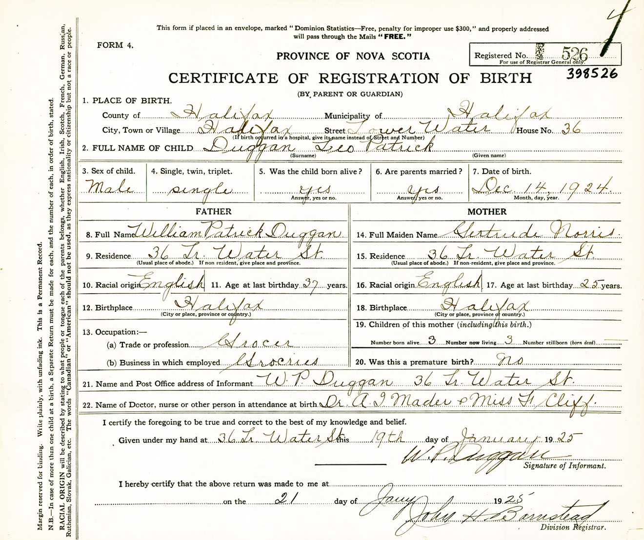 Male Birth Registration: Year: 1924 number: 39800526