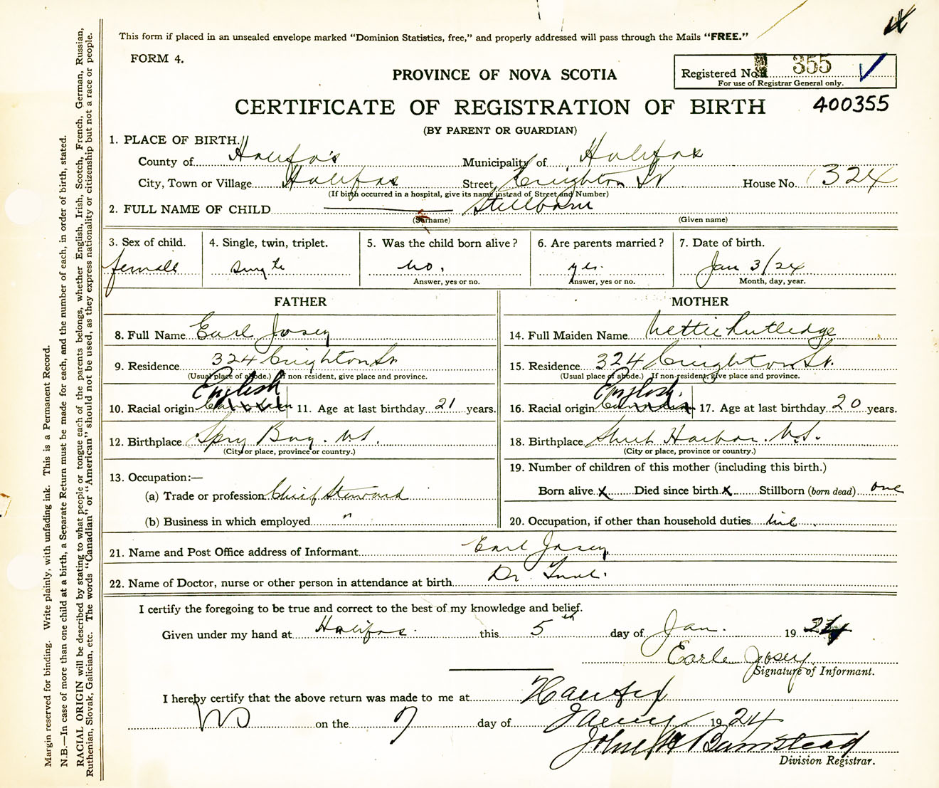 Female Birth Registration: Year: 1924 number: 40000355