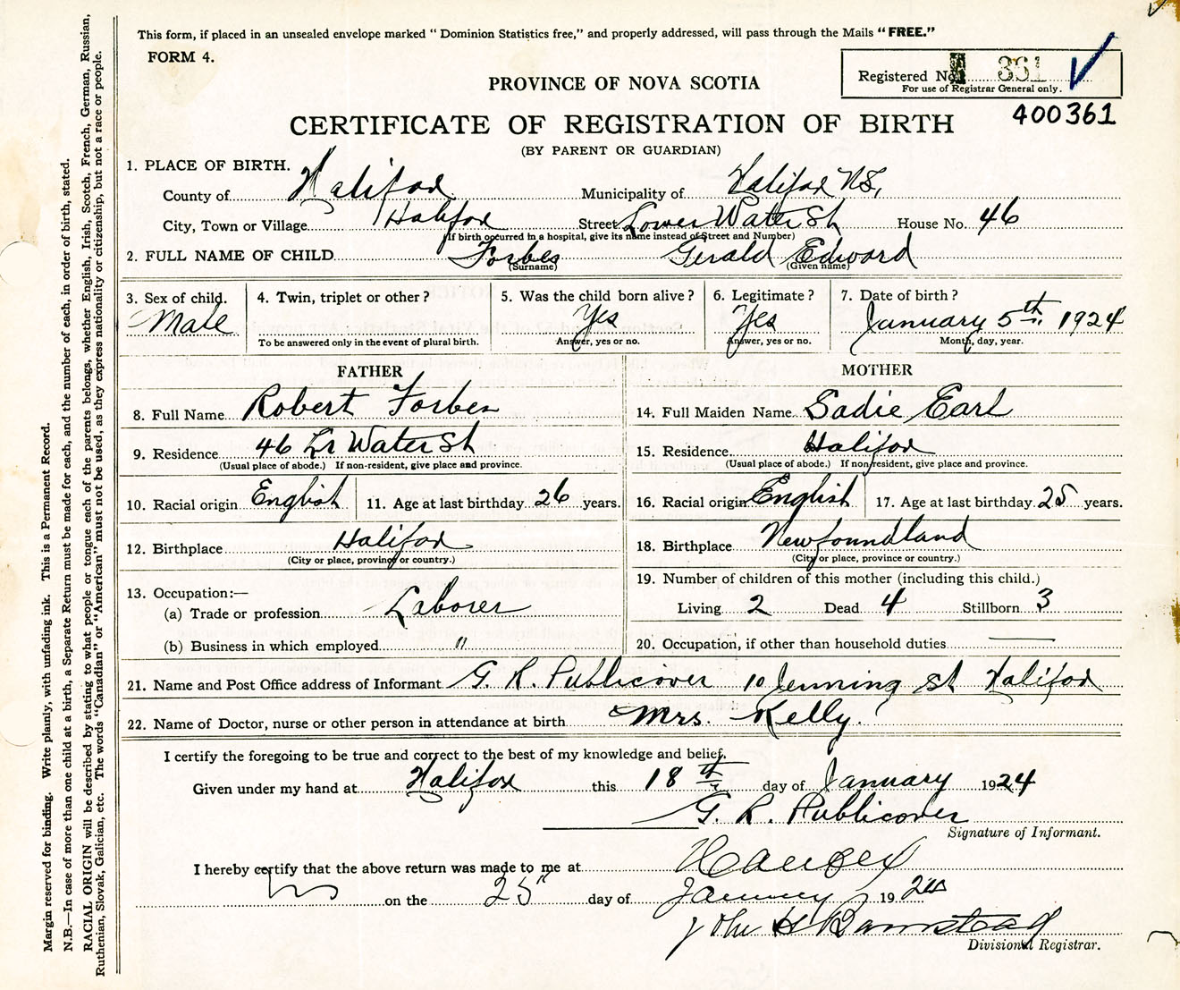 Male Birth Registration: Year: 1924 number: 40000361