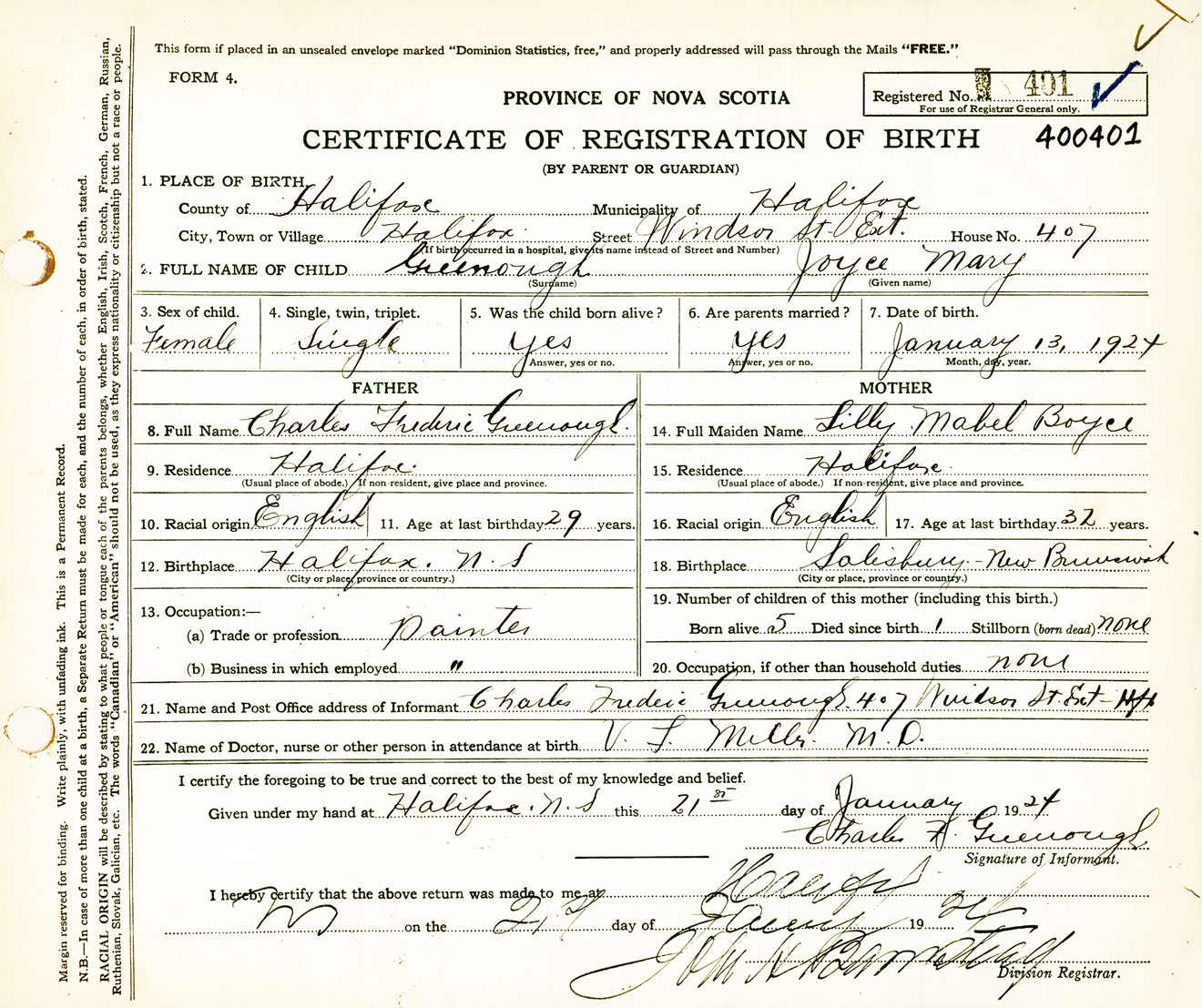 Female Birth Registration: Year: 1924 number: 40000401