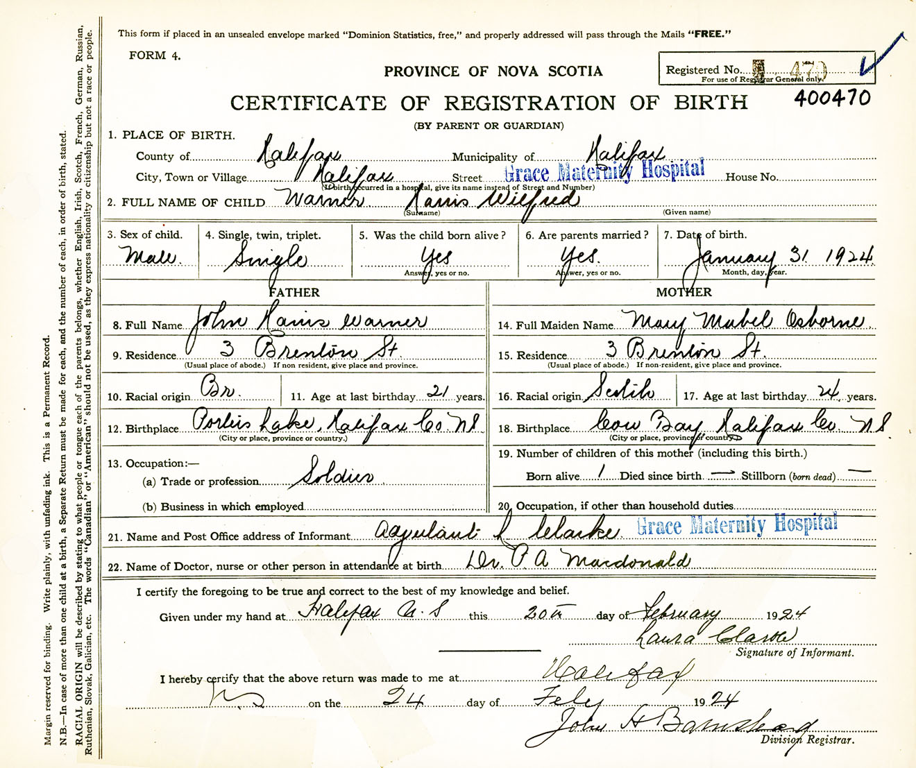 Male Birth Registration: Year: 1924 number: 40000470