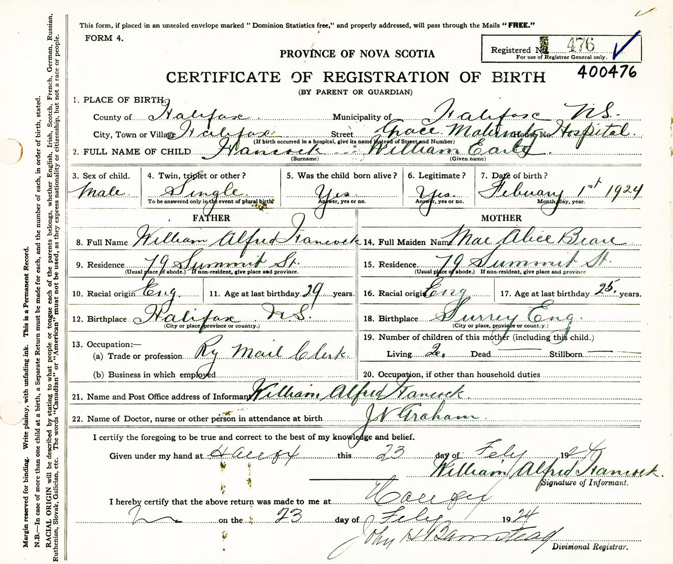 Male Birth Registration: Year: 1924 number: 40000476