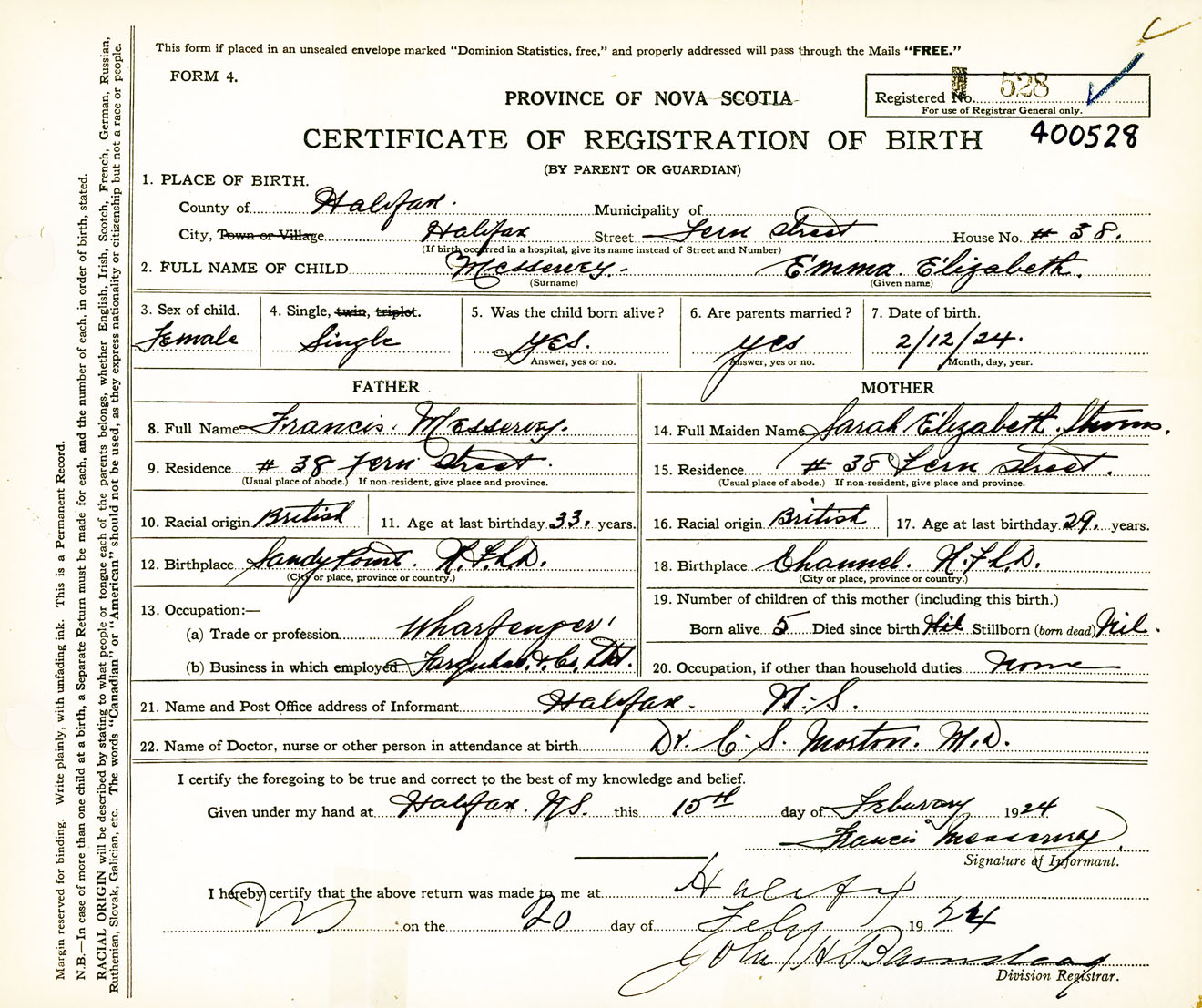 Female Birth Registration: Year: 1924 number: 40000528