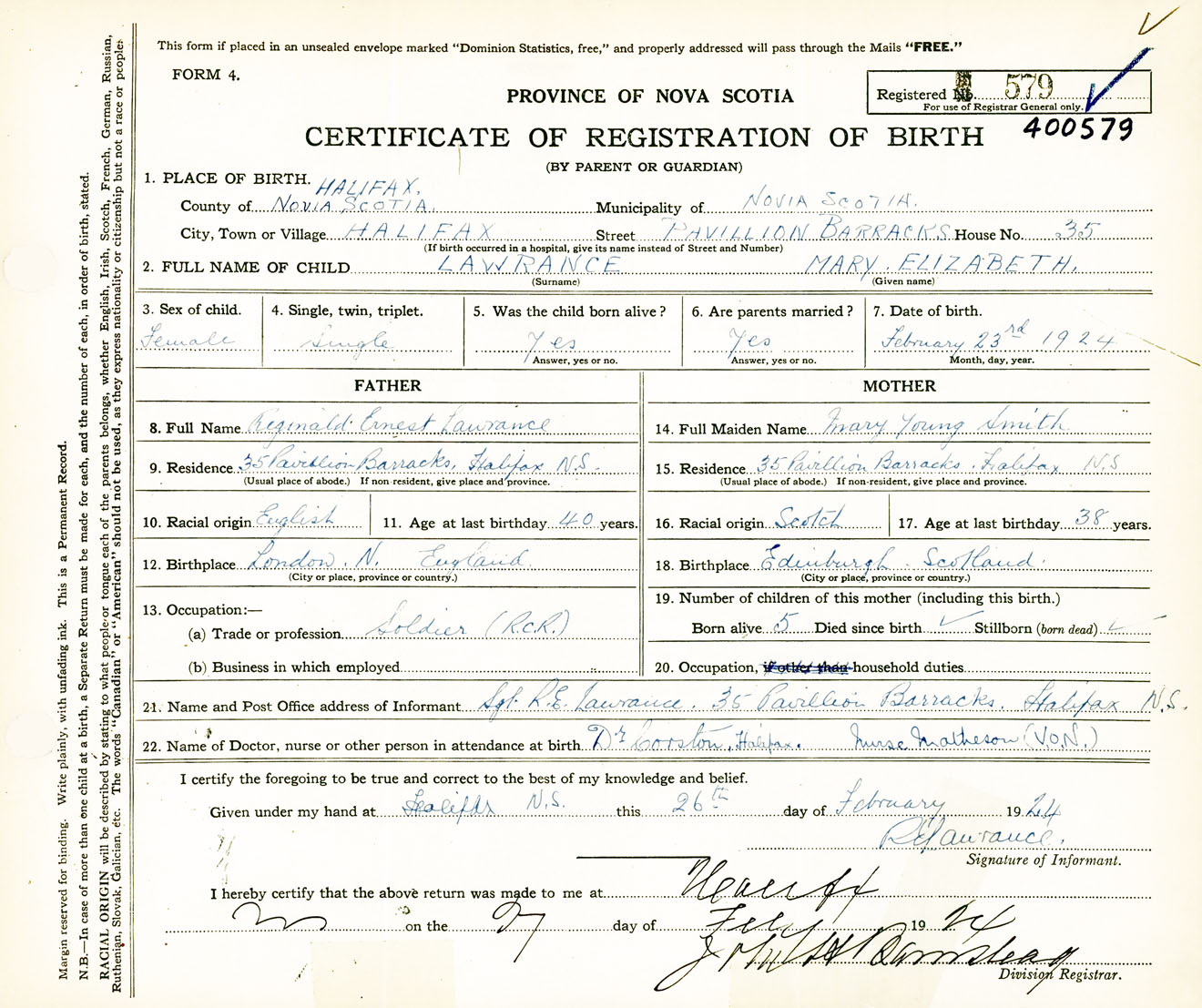 Female Birth Registration: Year: 1924 number: 40000579