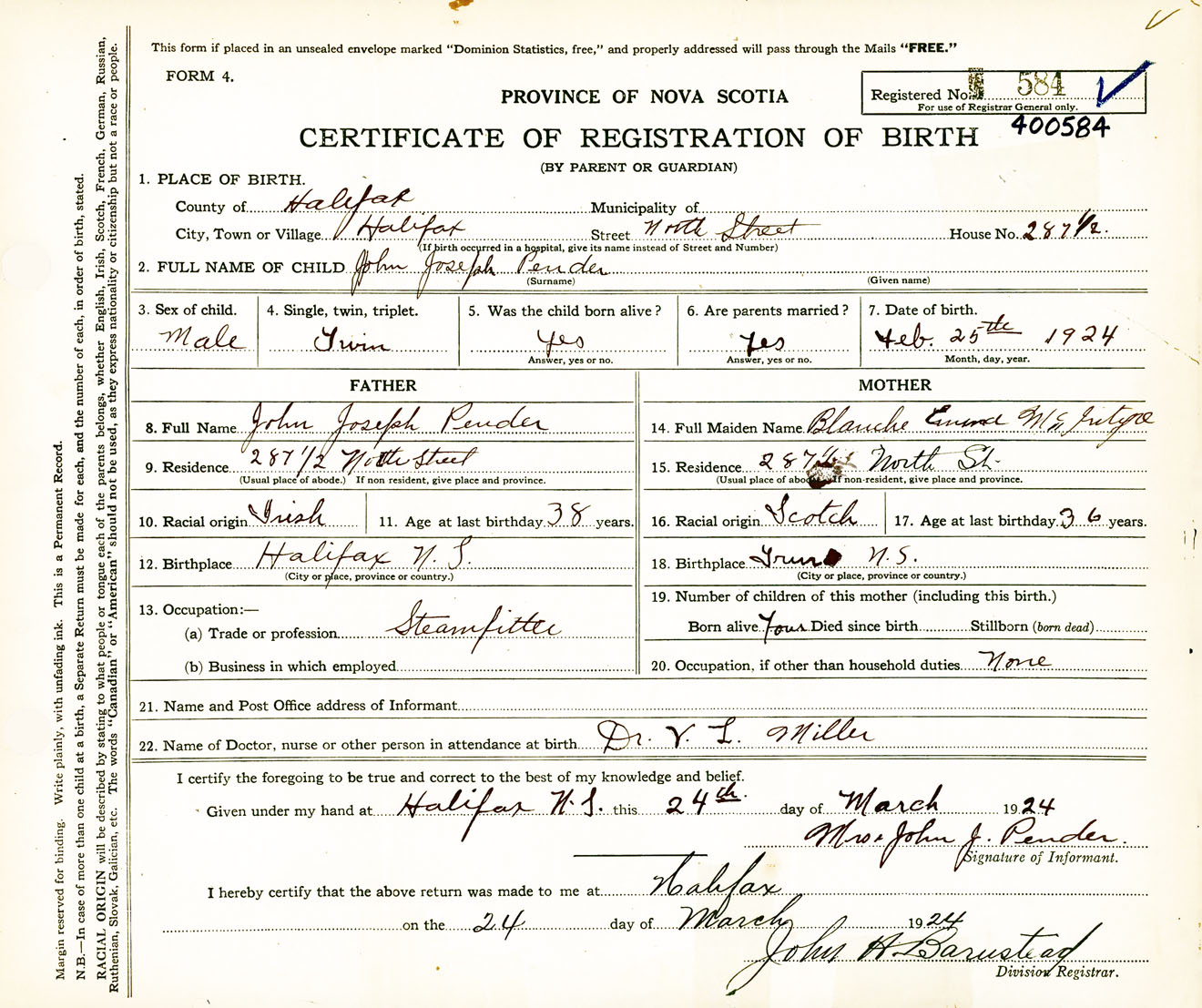Male Birth Registration: Year: 1924 number: 40000584