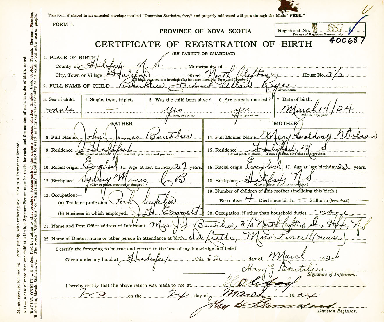 Male Birth Registration: Year: 1924 number: 40000687