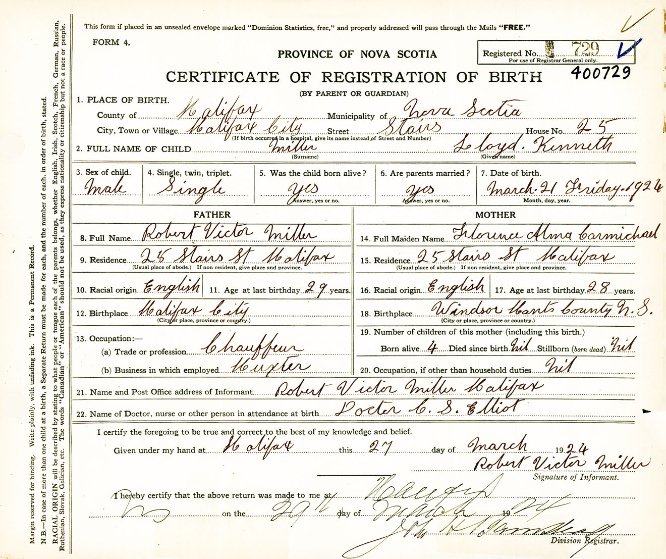 Male Birth Registration: Year: 1924 number: 40000729