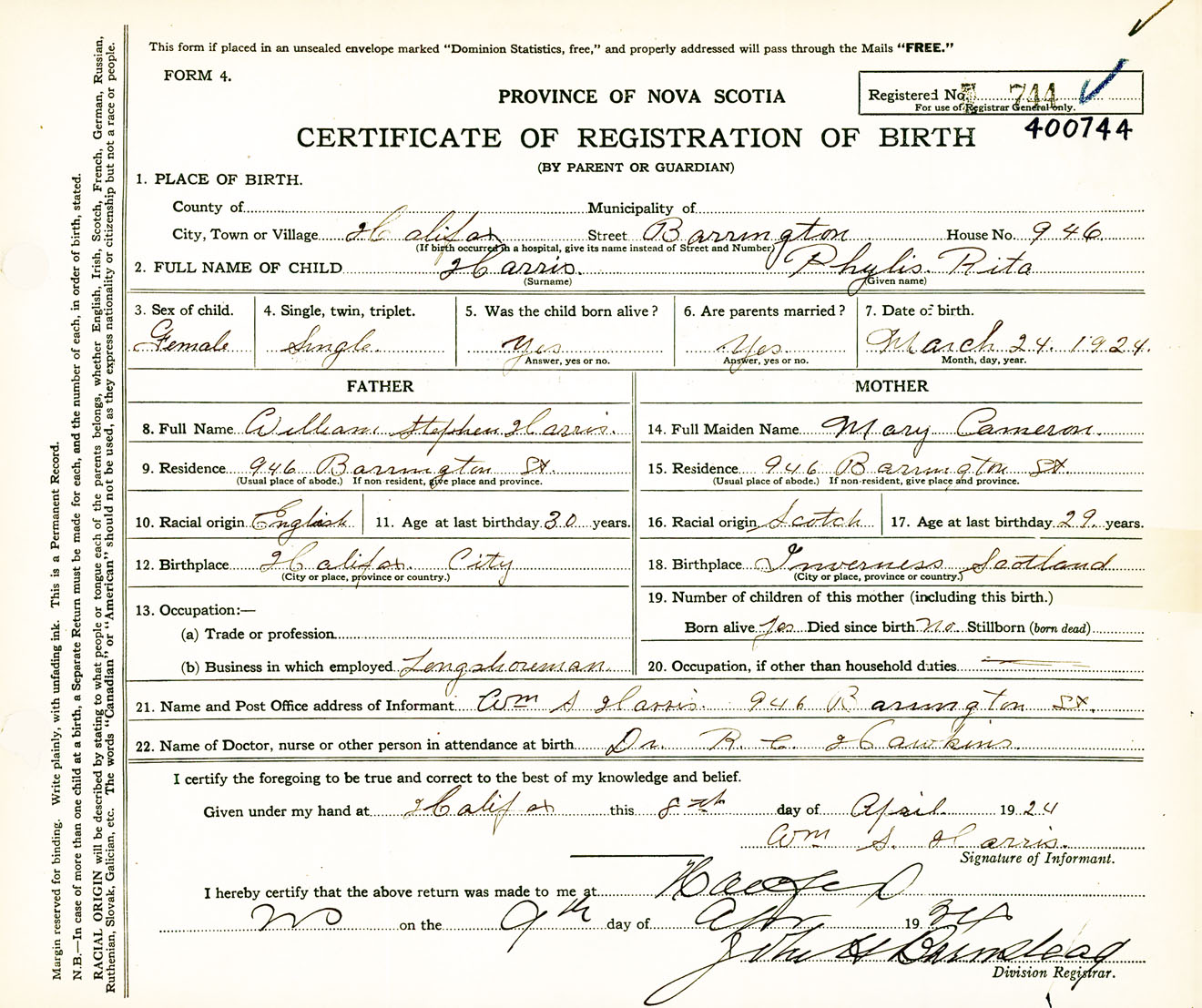 Nova Scotia Archives — https://archives.novascotia.ca/vital-statistics/birth/?ID=453659