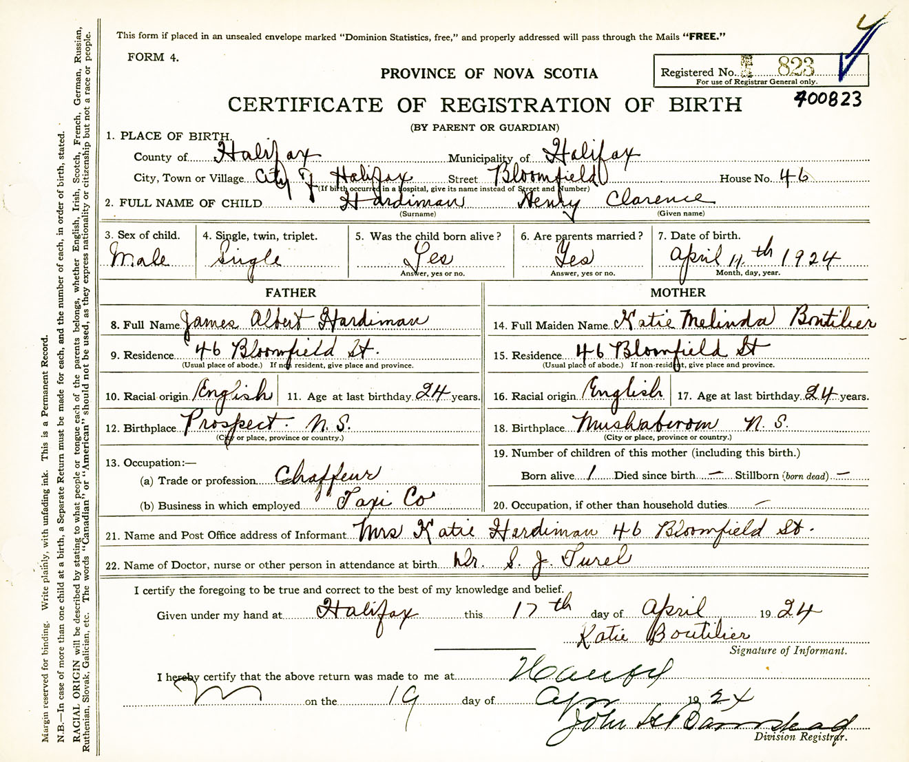 Male Birth Registration: Year: 1924 number: 40000823