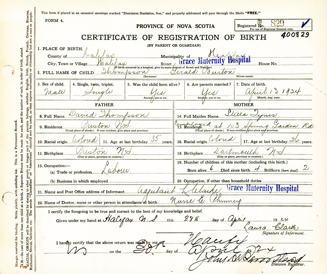 Male Birth Registration: Year: 1924 number: 40000829