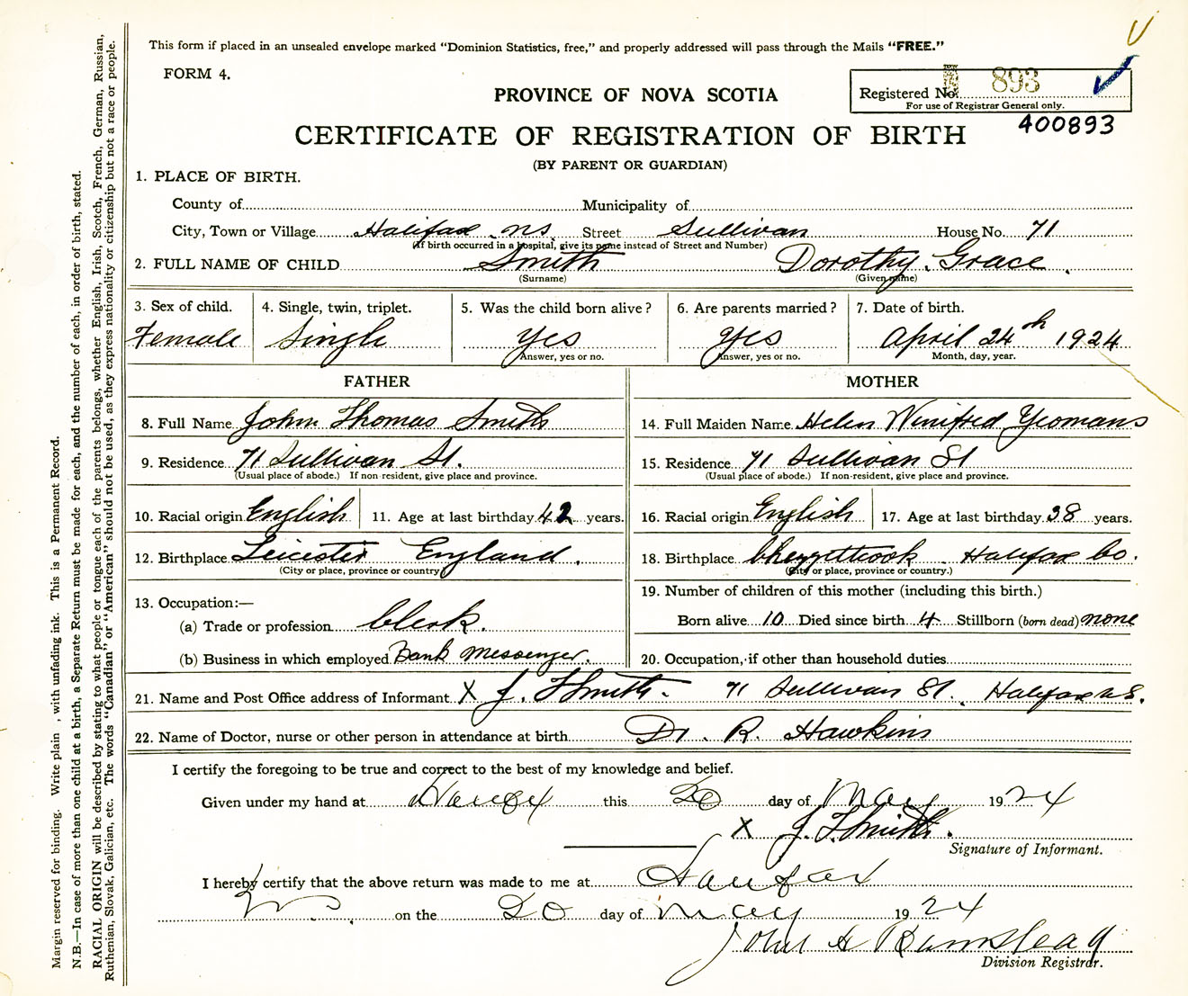 Female Birth Registration: Year: 1924 number: 40000893