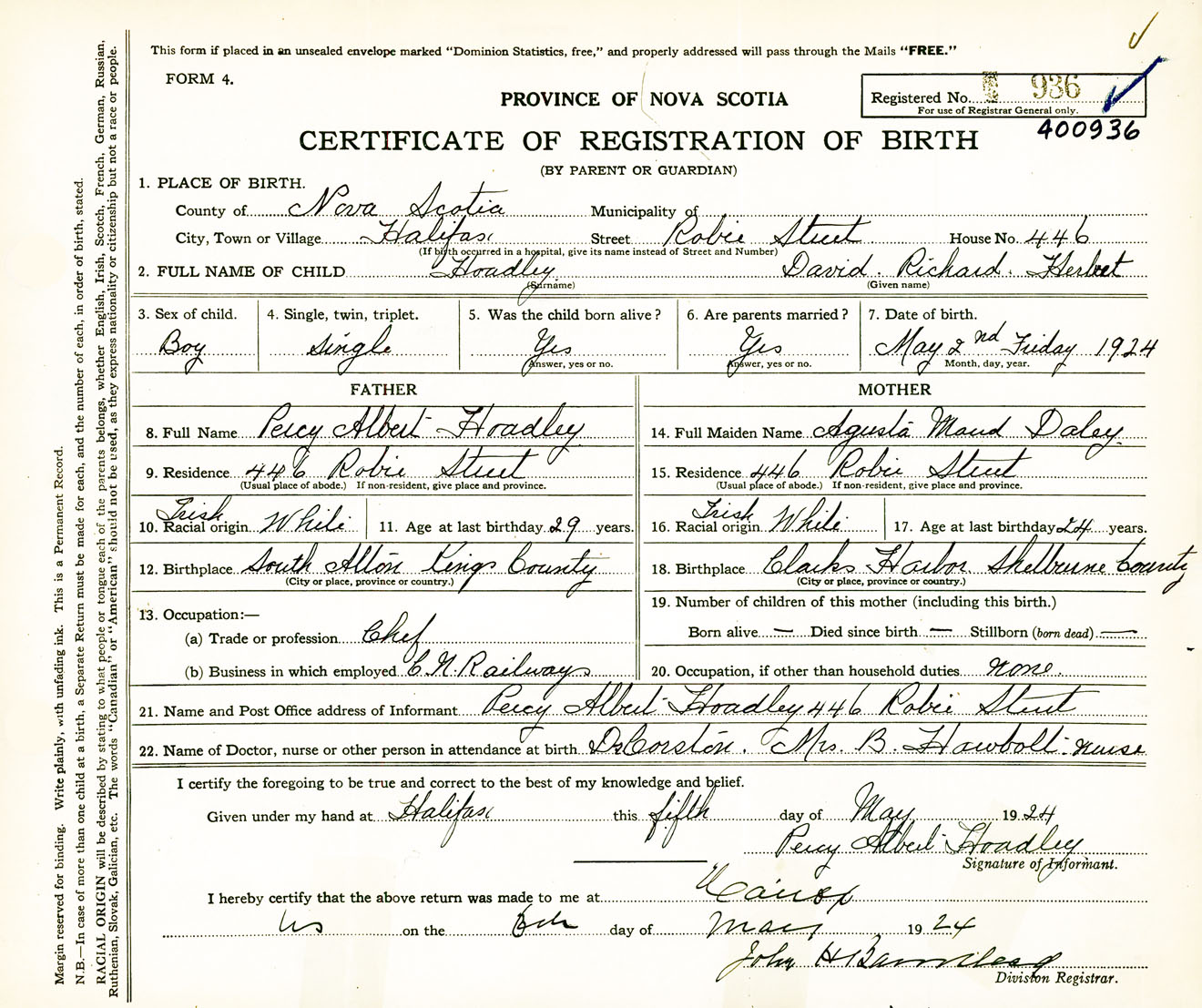Male Birth Registration: Year: 1924 number: 40000936