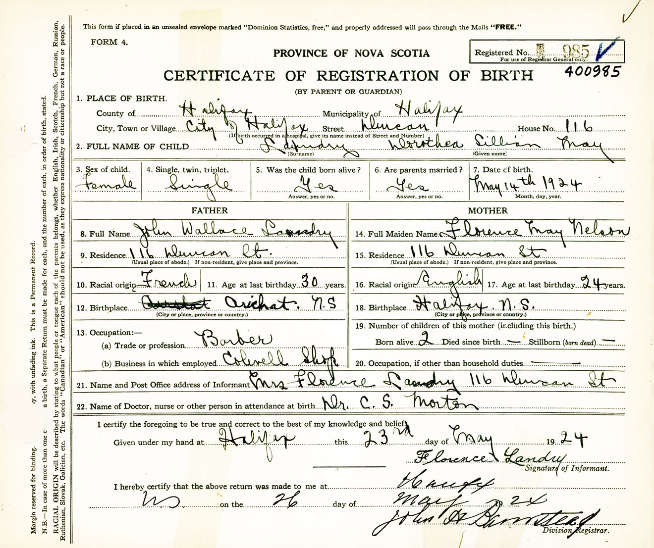 Nova Scotia Archives — https://archives.novascotia.ca/vital-statistics/birth/?ID=453900