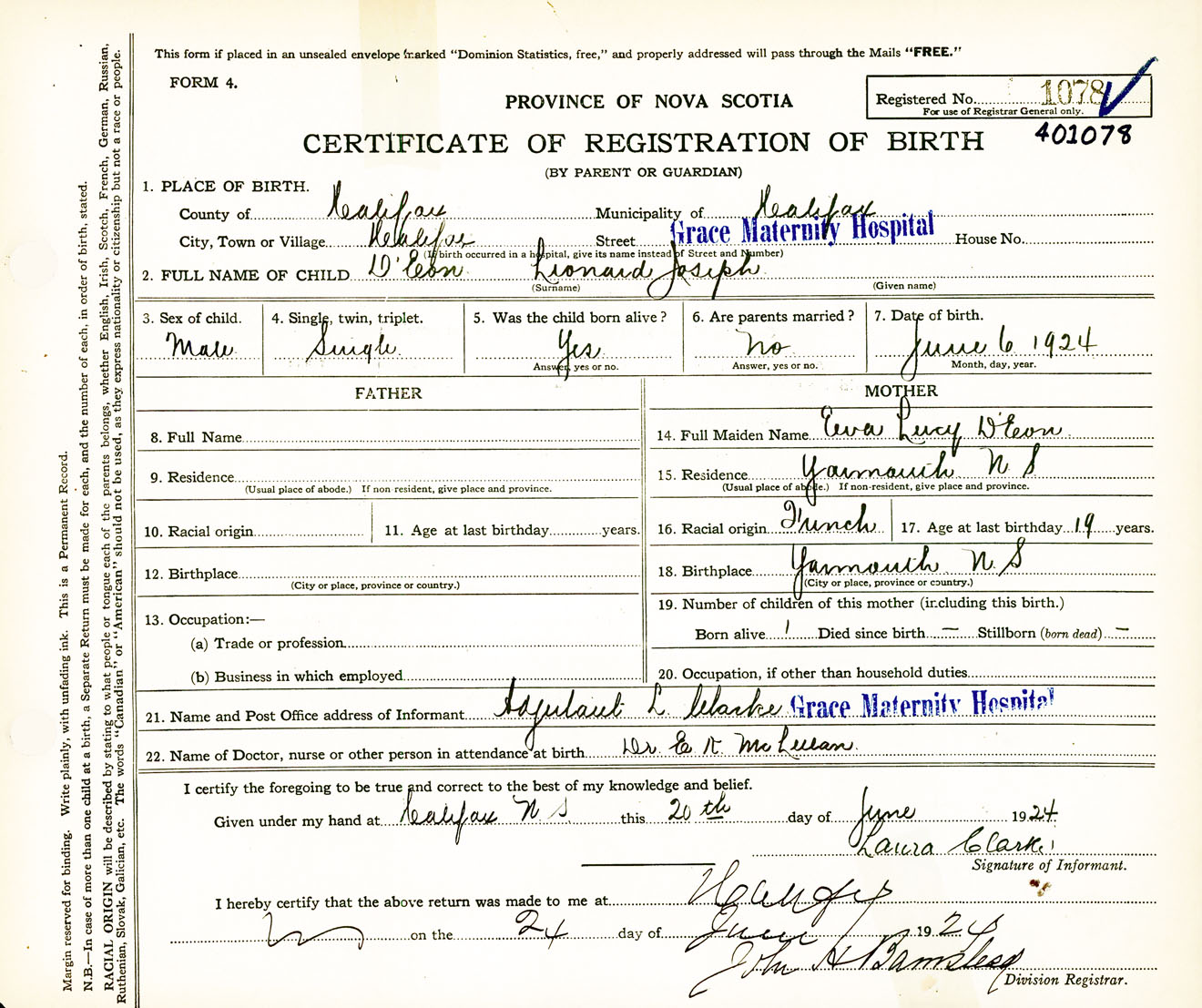 Male Birth Registration: Year: 1924 number: 40100078