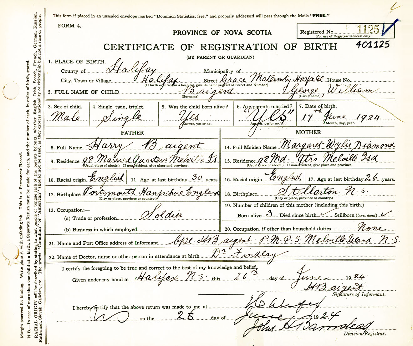 Male Birth Registration: Year: 1924 number: 40100125