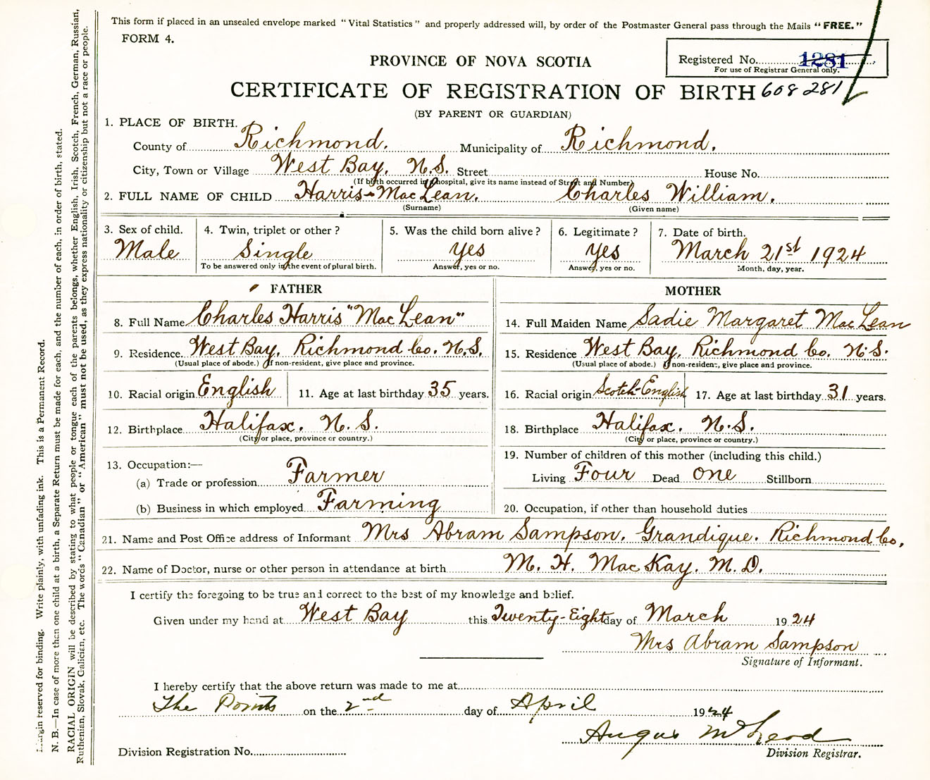 Nova Scotia Archives — https://archives.novascotia.ca/vital-statistics/birth/?ID=454245