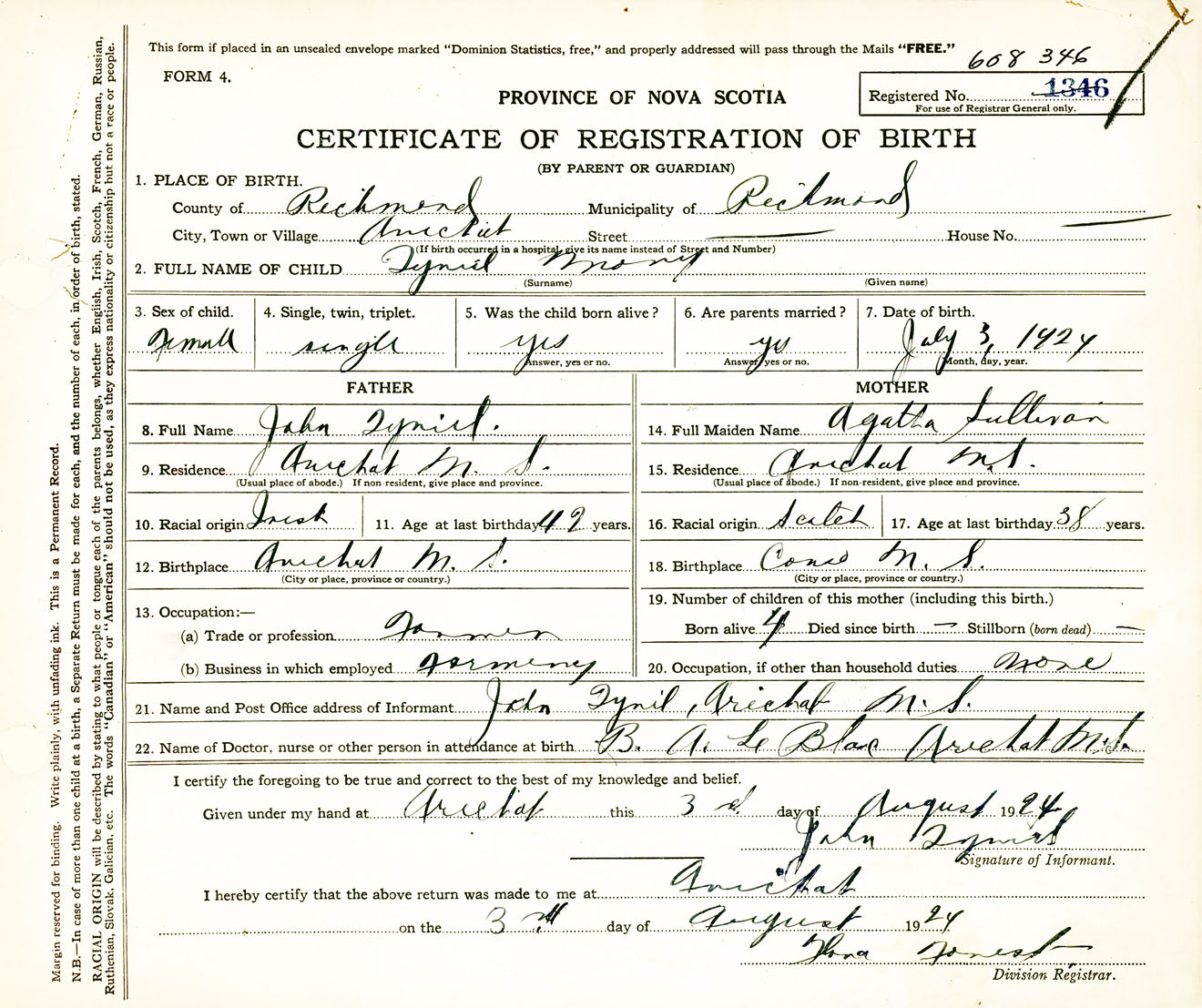 Nova Scotia Archives — https://archives.novascotia.ca/vital-statistics/birth/?ID=454310