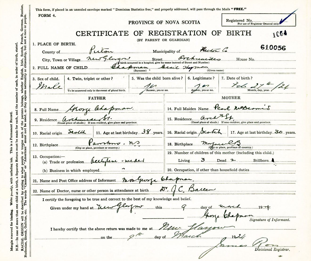 Male Birth Registration: Year: 1924 number: 61000056
