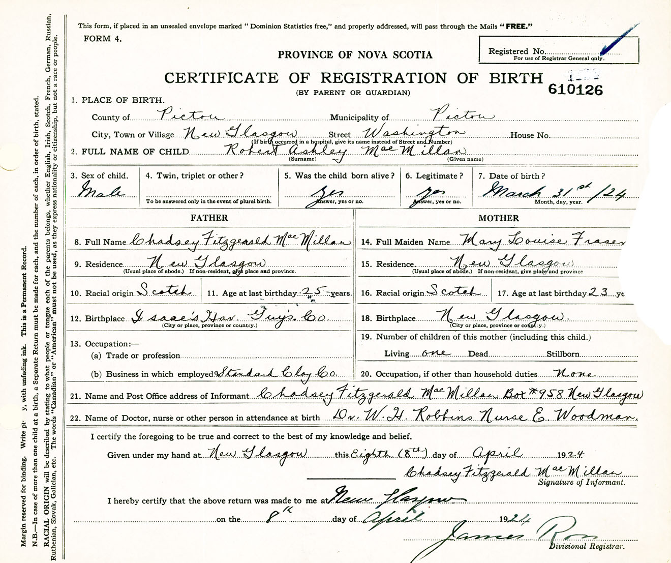 Male Birth Registration: Year: 1924 number: 61000126