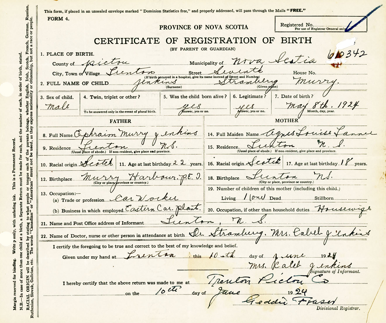 Male Birth Registration: Year: 1924 number: 61000342