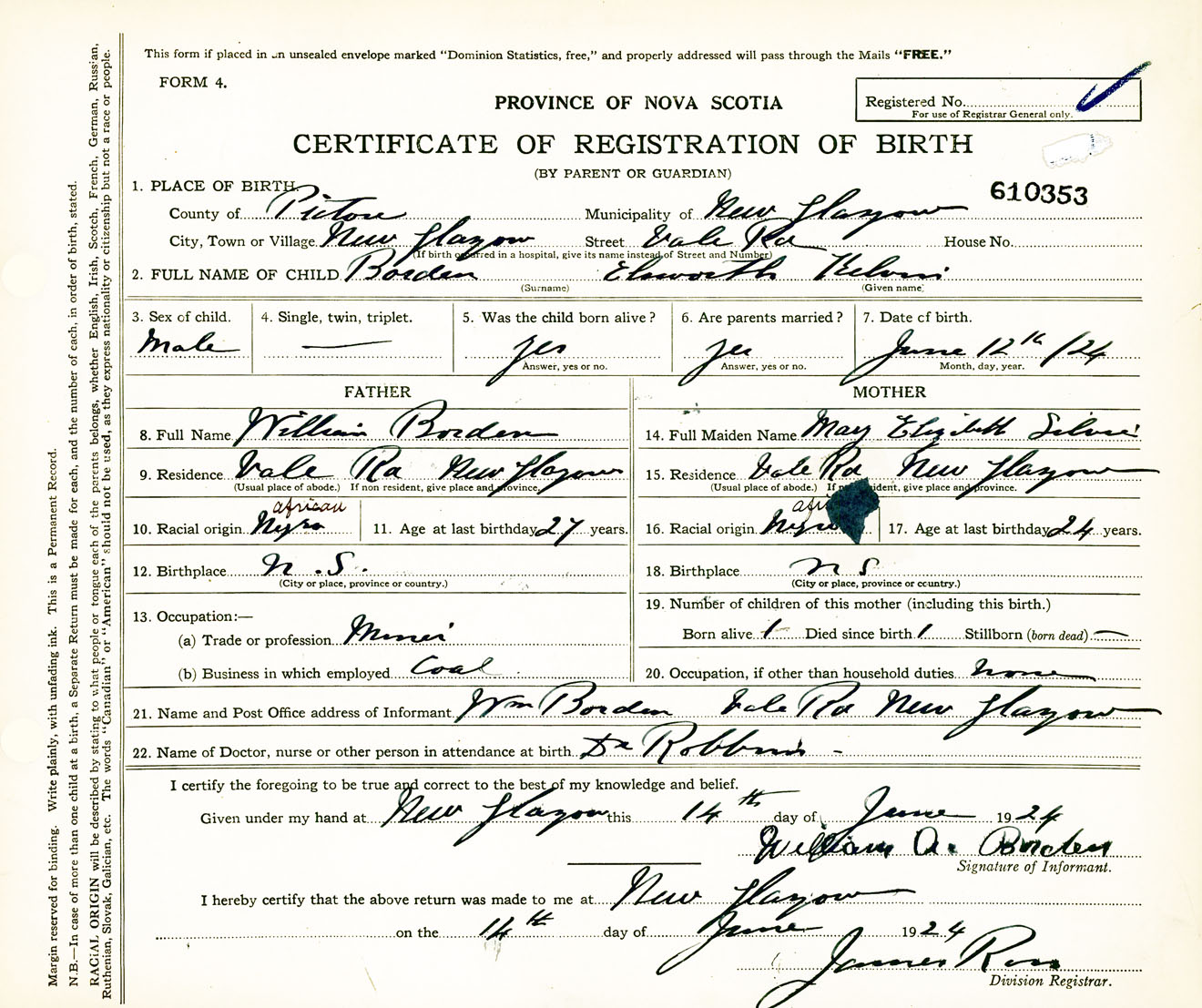 Male Birth Registration: Year: 1924 number: 61000353
