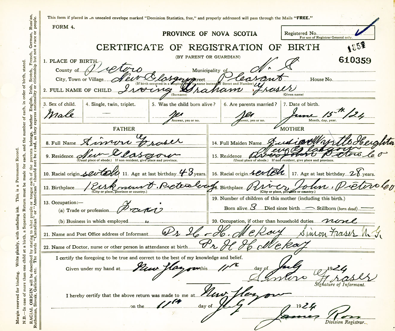 Male Birth Registration: Year: 1924 number: 61000359