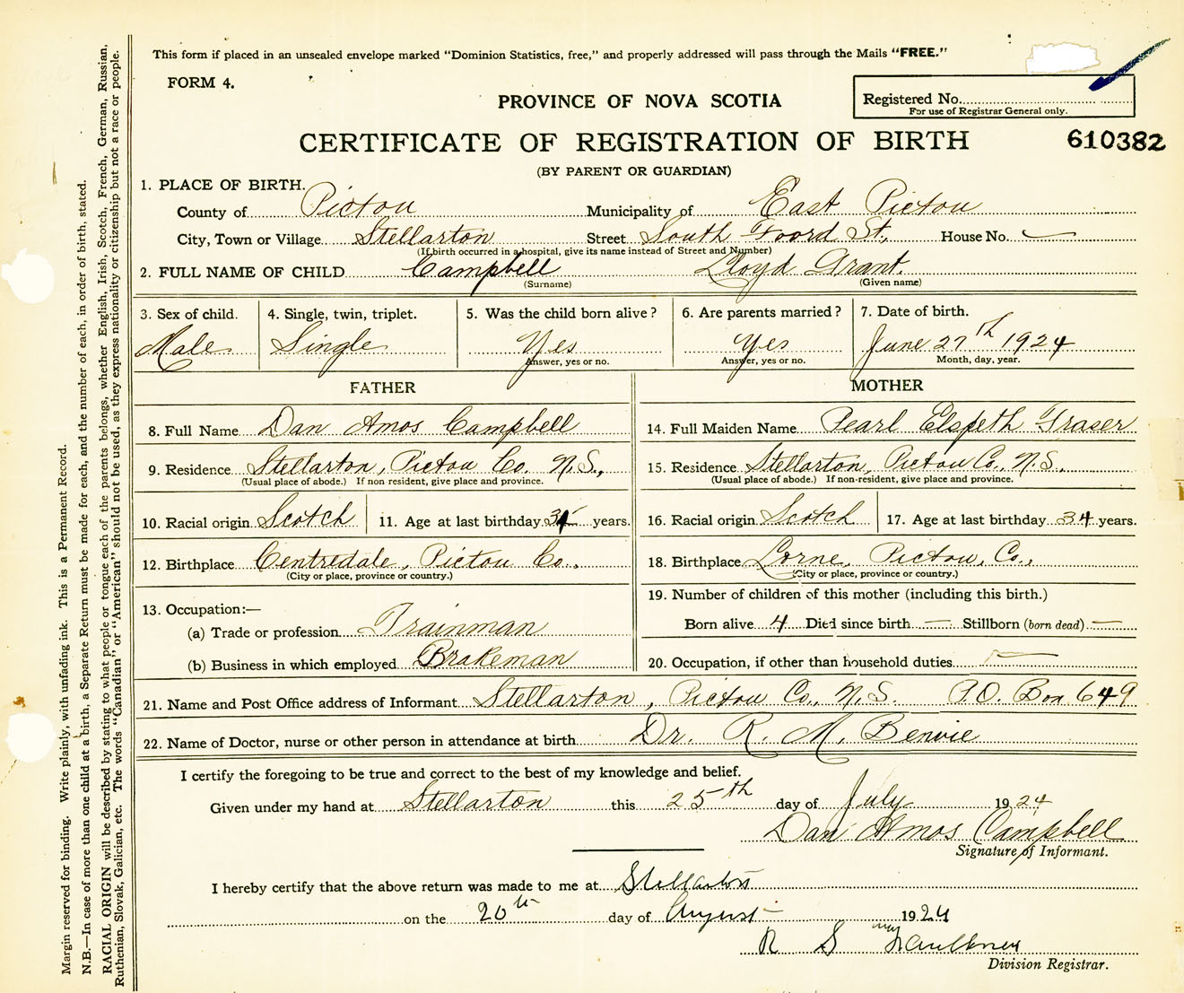 Male Birth Registration: Year: 1924 number: 61000382
