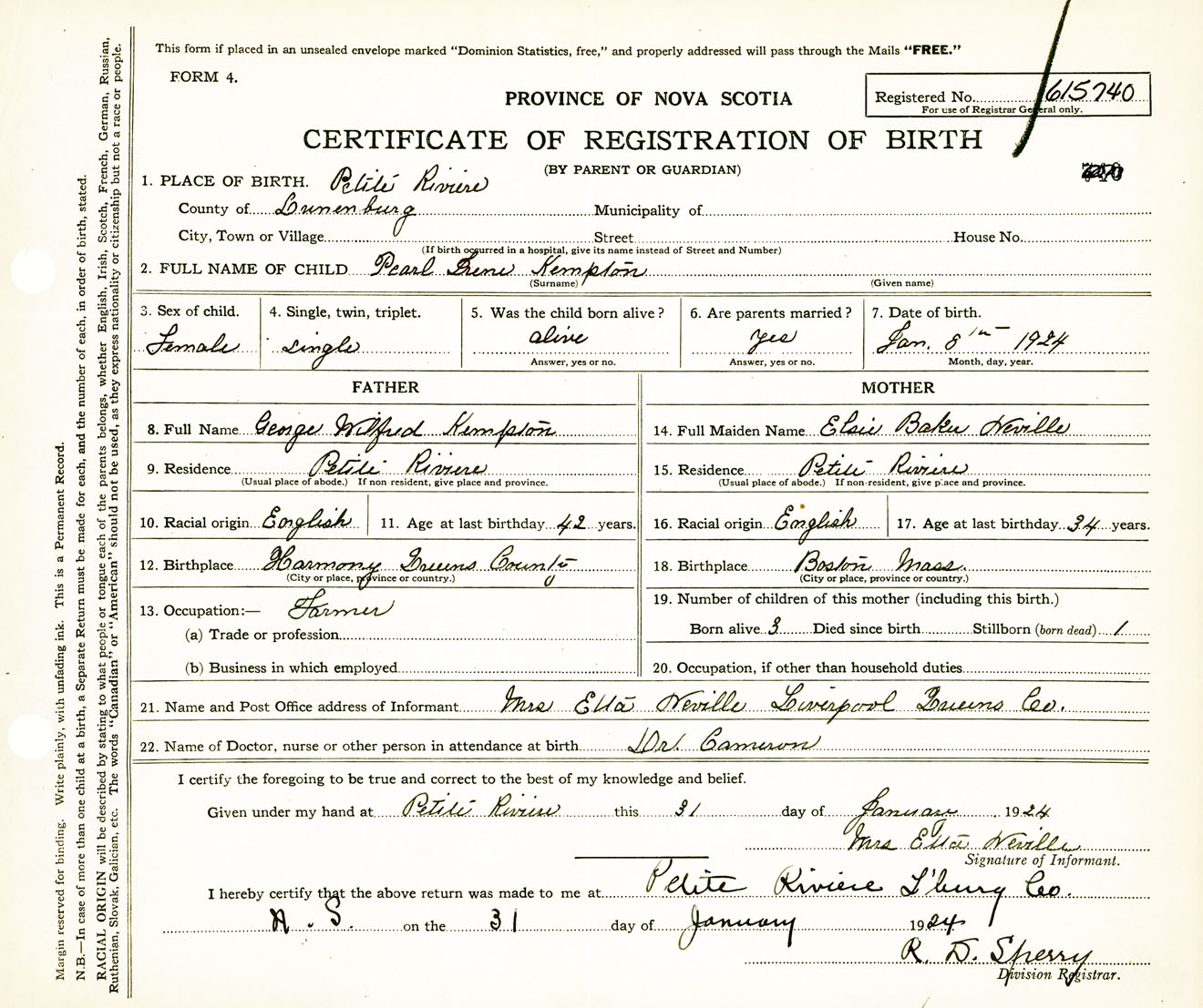 Female Birth Registration: Year: 1924 number: 61500740