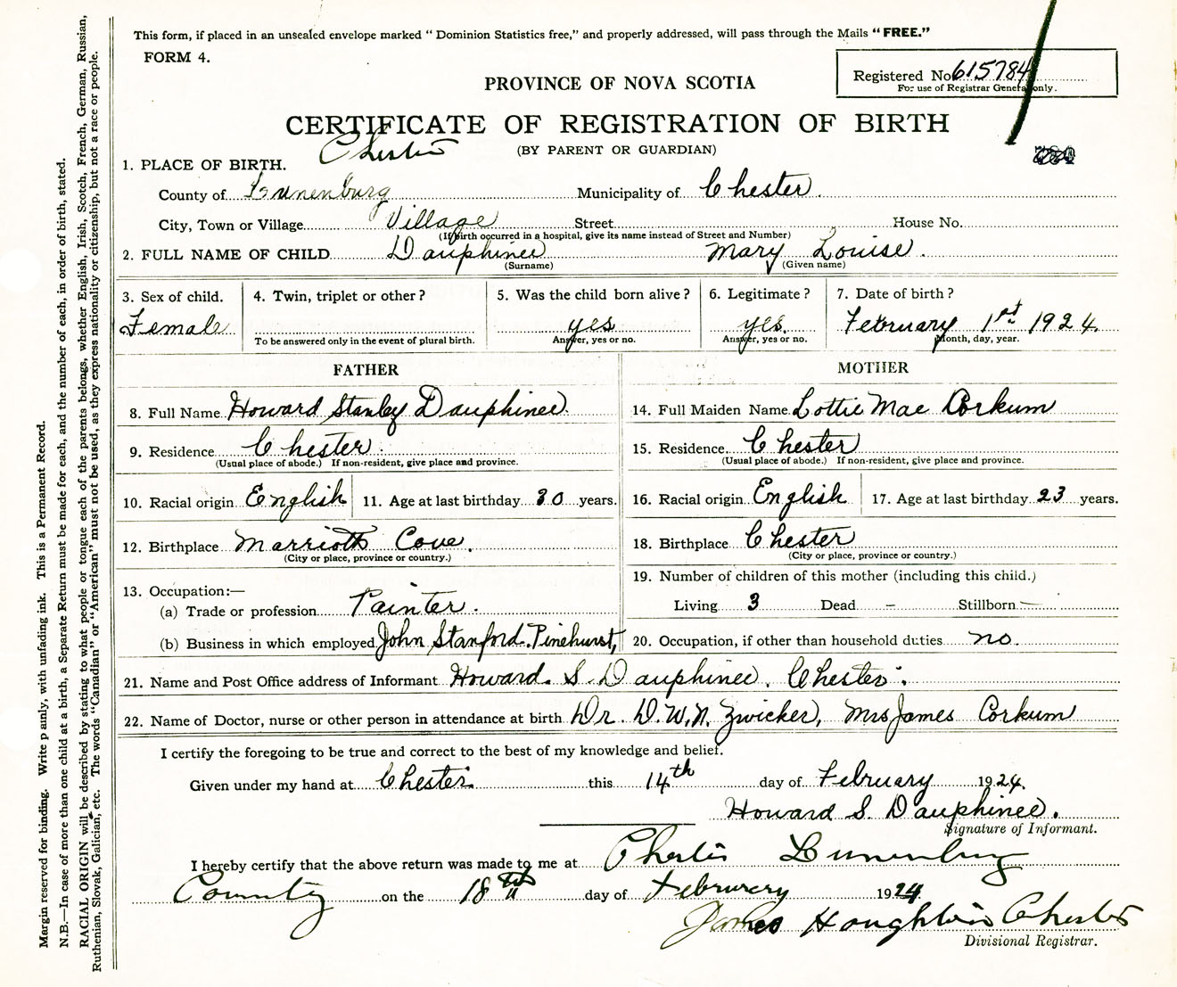 Female Birth Registration: Year: 1924 number: 61500784