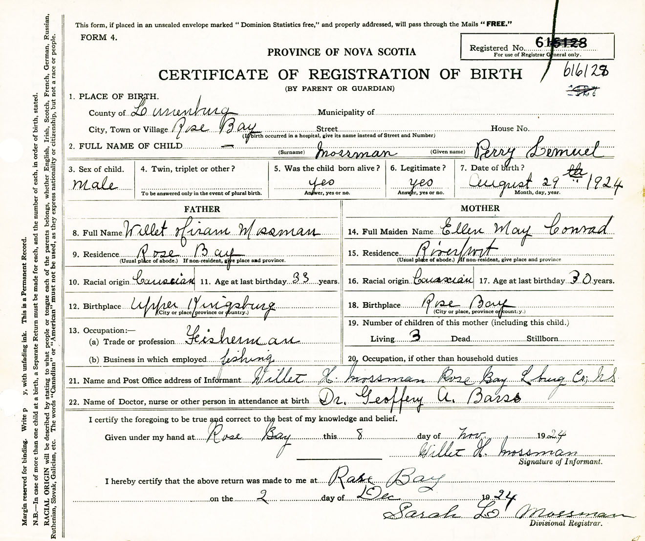 Male Birth Registration: Year: 1924 number: 61600128