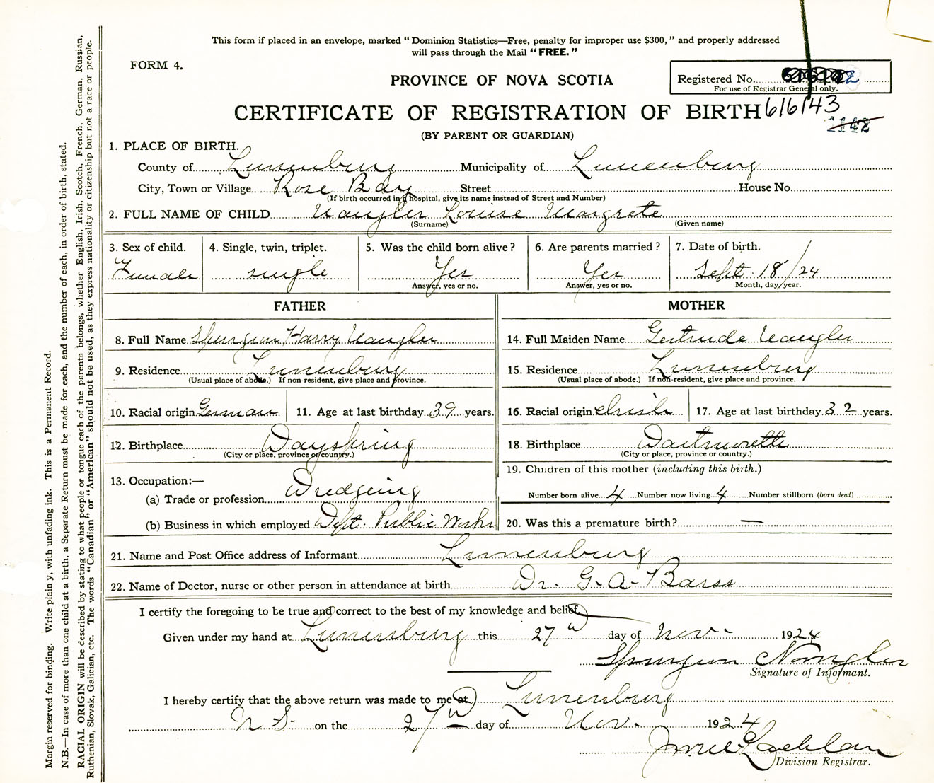 Female Birth Registration: Year: 1924 number: 61600143