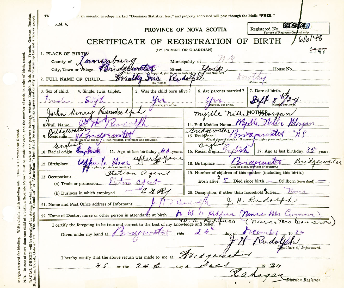 Female Birth Registration: Year: 1924 number: 61600148