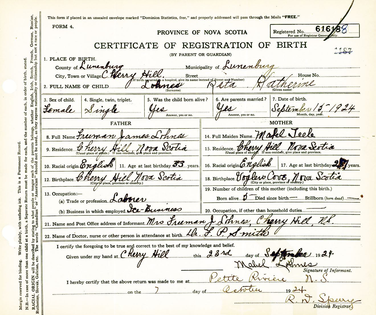 Female Birth Registration: Year: 1924 number: 61600188