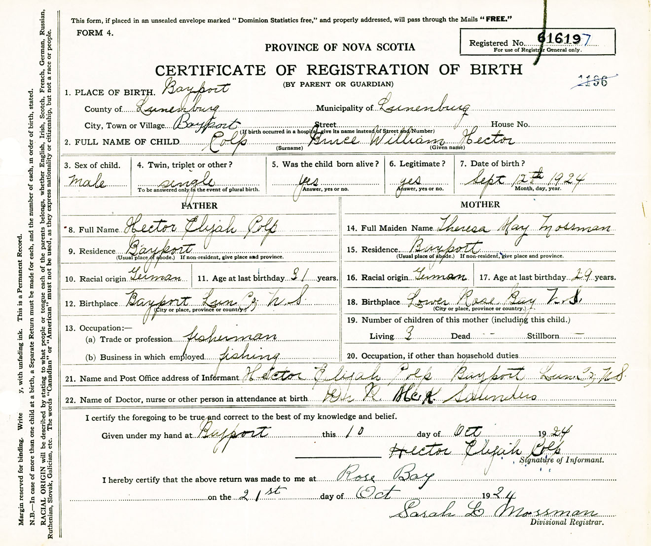 Male Birth Registration: Year: 1924 number: 61600197