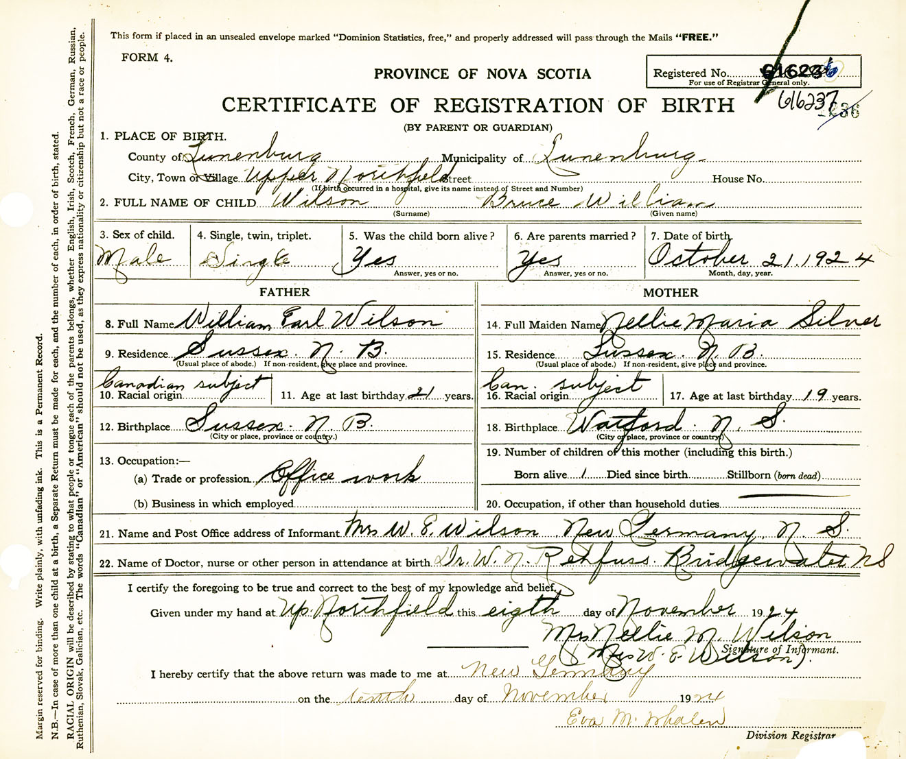 Male Birth Registration: Year: 1924 number: 61600237