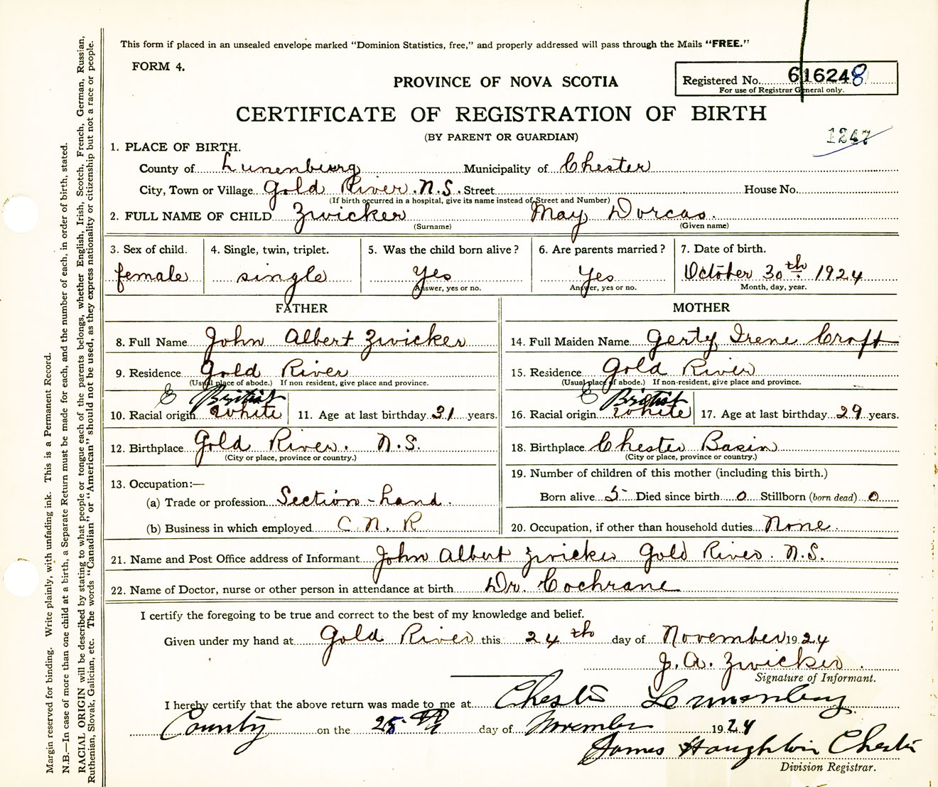 Female Birth Registration: Year: 1924 number: 61600248