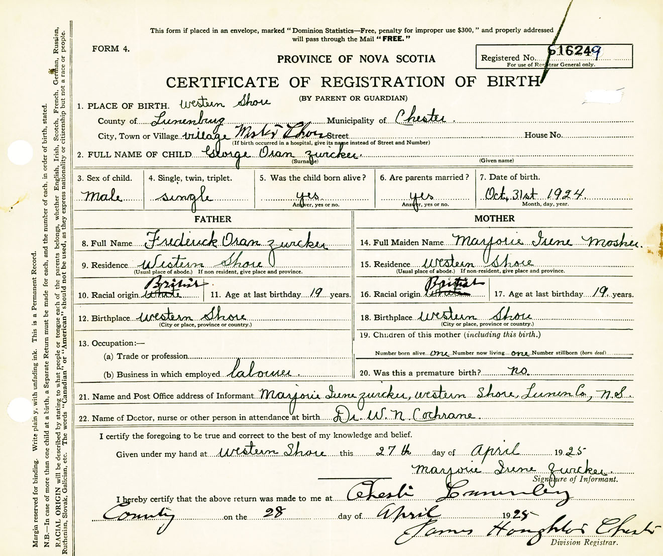 Male Birth Registration: Year: 1924 number: 61600249