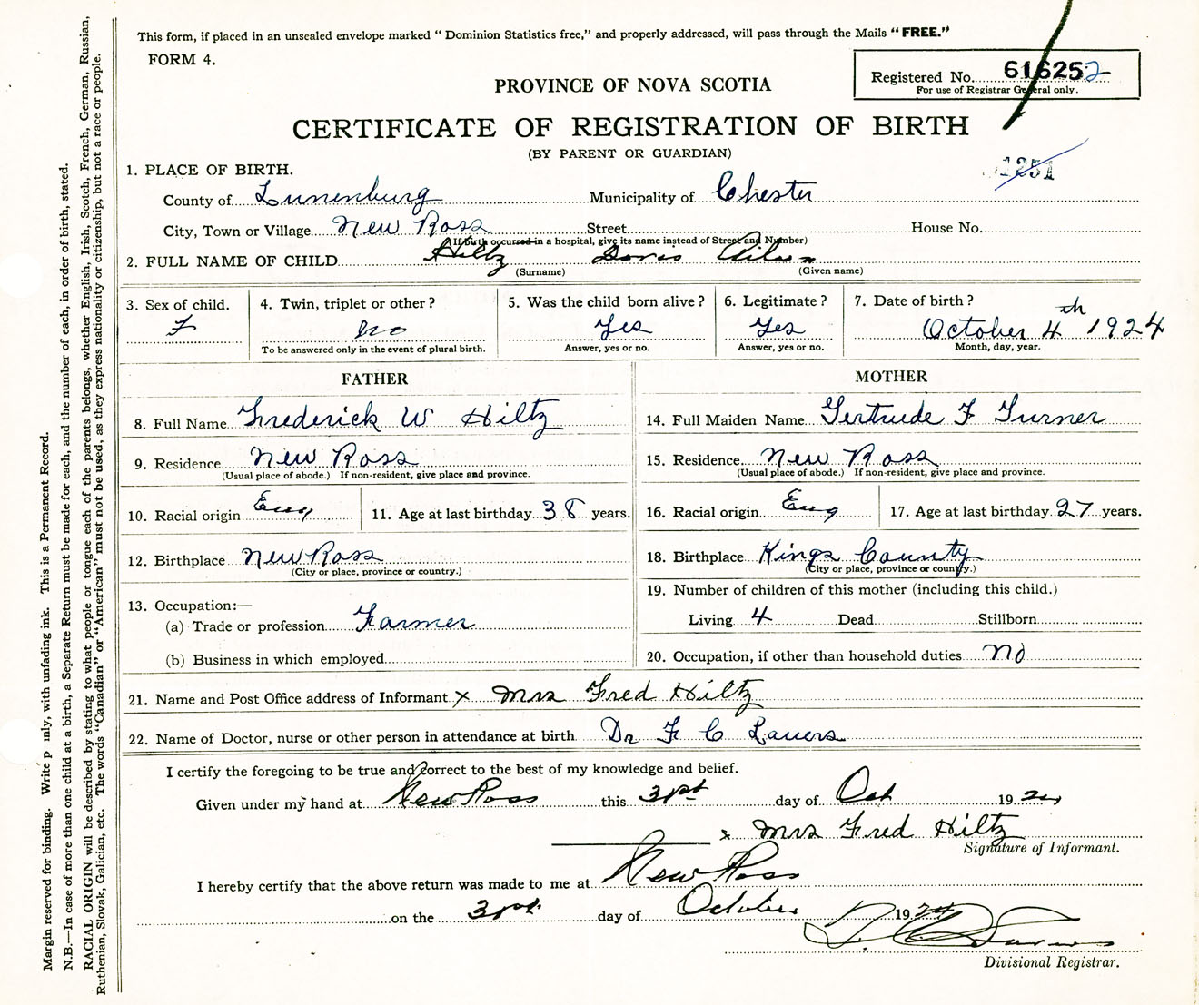 Female Birth Registration: Year: 1924 number: 61600252