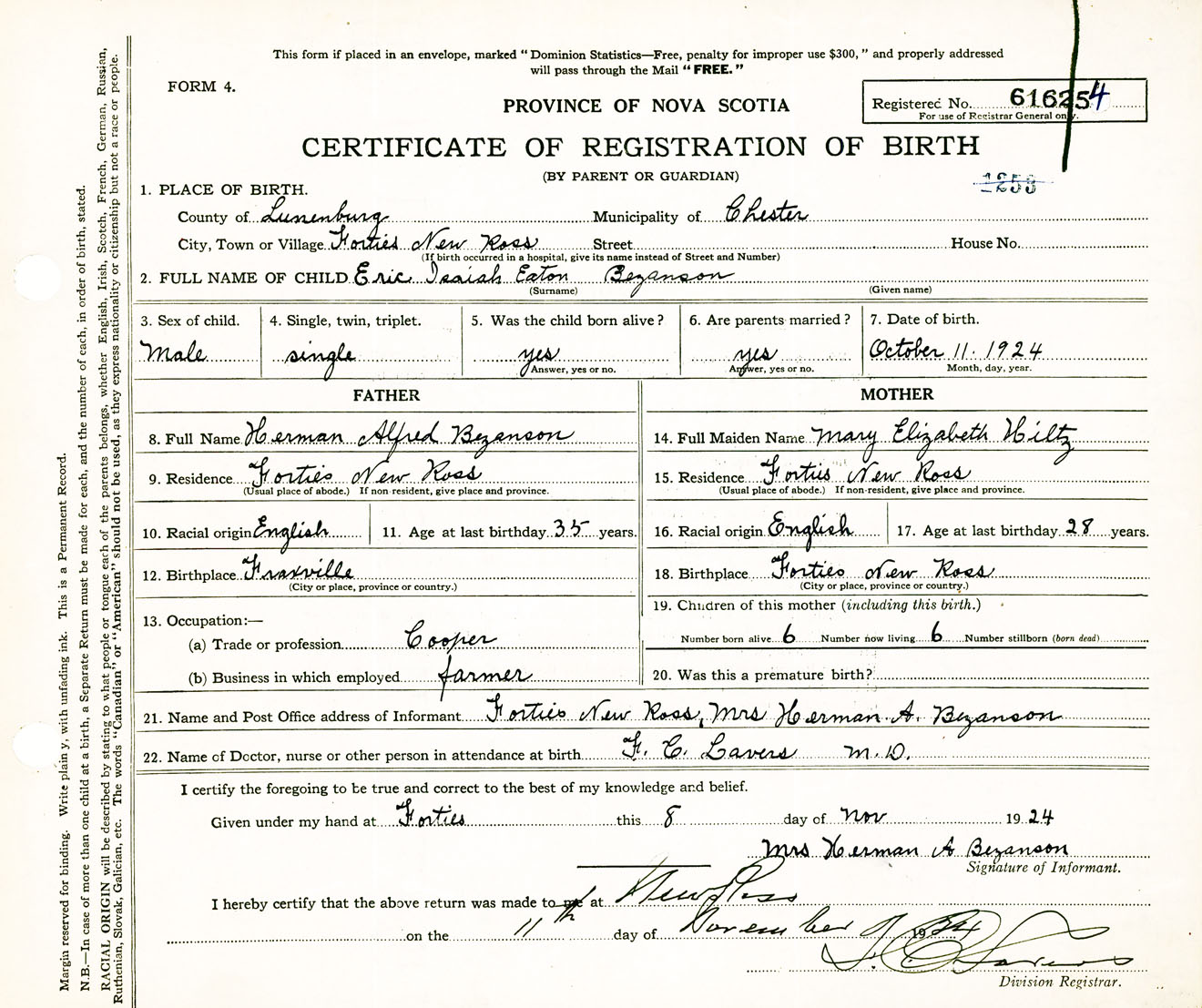 Male Birth Registration: Year: 1924 number: 61600254